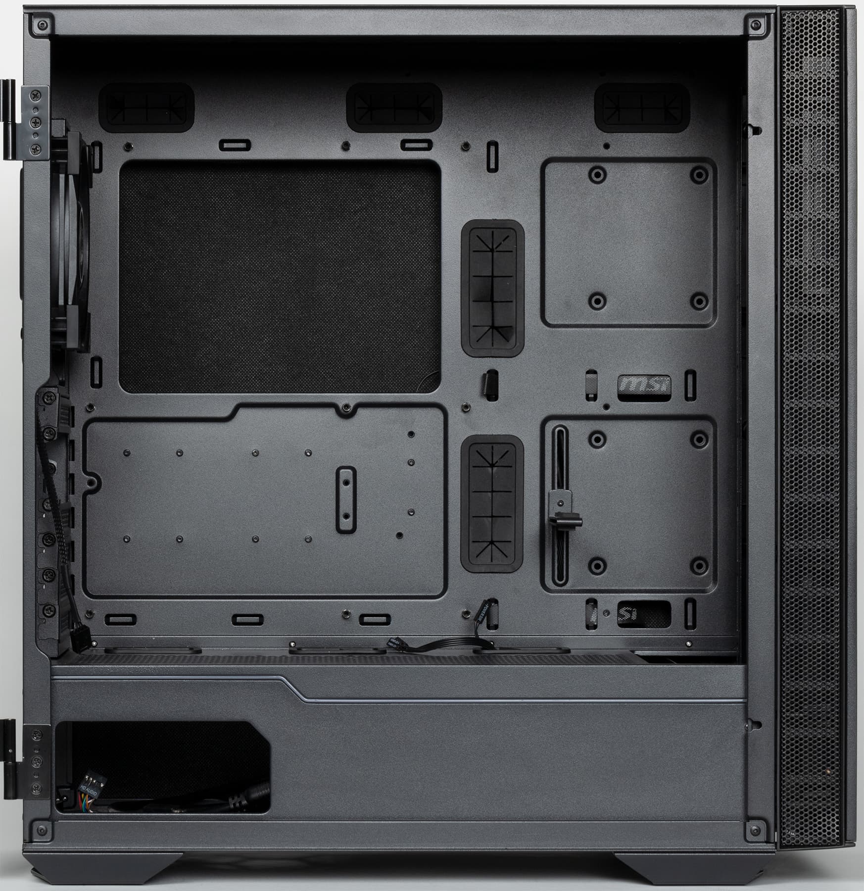 Собирать компьютер в этом корпусе достаточно удобно, свободного места внутри сравнительно много, что позволит разместить довольно габаритные компоненты. Правда, ставить сюда топовые компоненты нецелесообразно, так как система охлаждения на этот вариант не очень рассчитана. Наилучшие свои качества корпус сможет продемонстрировать при сборке систем на компонентах со средним или умеренным тепловыделением, к которым нужно иметь оперативный доступ, потому что магнитная система крепления позволяет быстро распахнуть стенку и погрузиться в недра системного блока. Собрать игровую систему даже средней ценовой категории в корпусе MSI MPG Quietude 100S будет несложно.