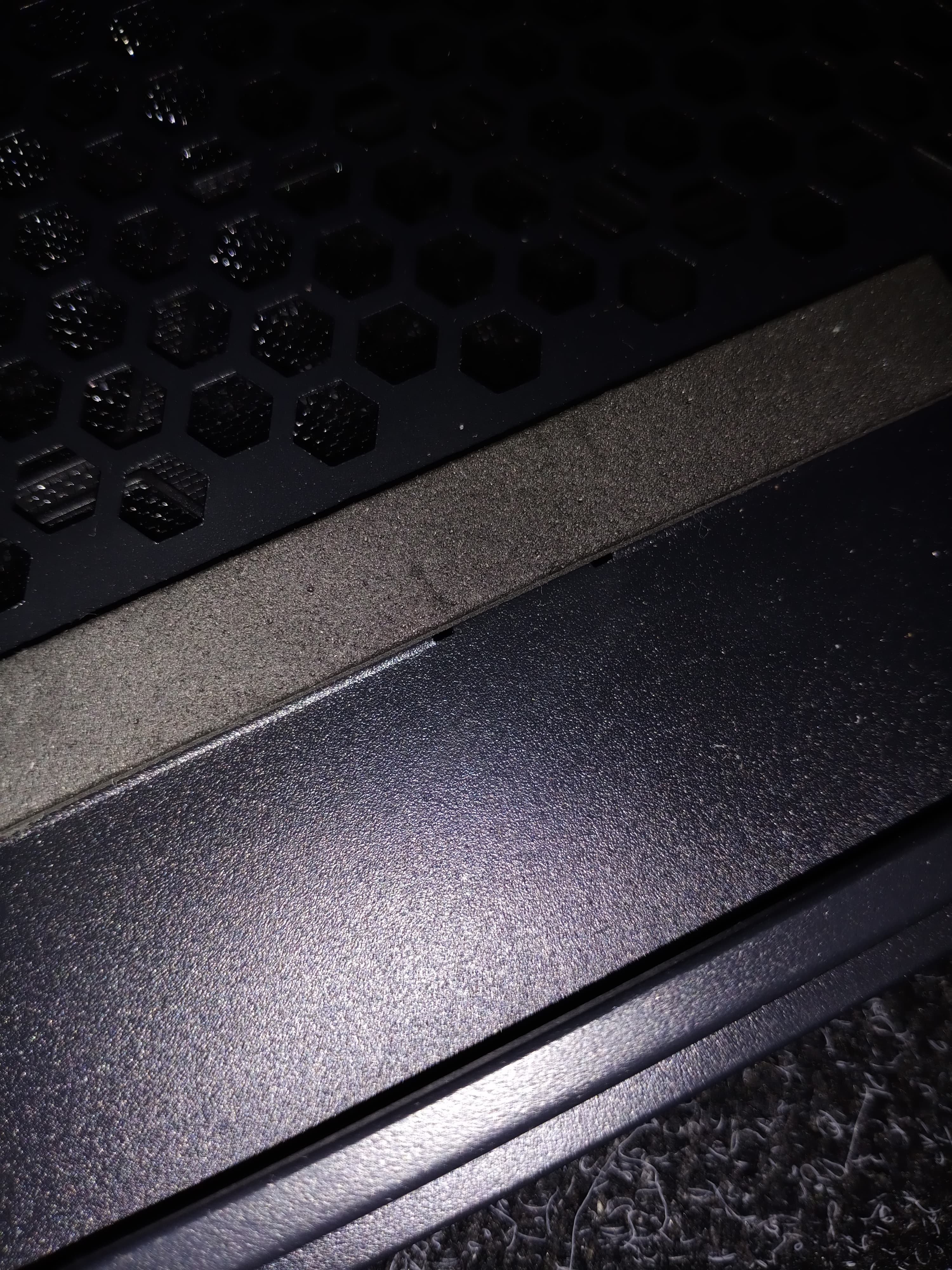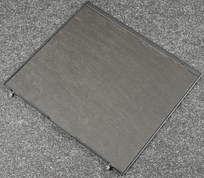 При установке крышки поверх фильтра та заметно выпирает над поверхностью верхней панели корпуса, а вот если фильтр снять, а крышку вернуть на свое место, тогда она уже встает нормально и не выглядит инородным телом. В общем, вариантов тут два: с фильтром, но без крышки — или с крышкой, но без фильтра. Крышка снаружи стальная, а с внутренней стороны покрыта антивибрационным материалом. Используется магнитное крепление.