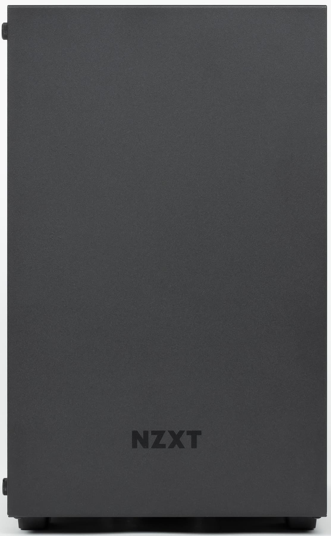 Внешняя сторона передней панели выполнена из такой же стали, как и остальные элементы шасси, при желании к ней можно крепить внешние магнитные аксессуары, например держатель для наушников. Какие-либо декоративные элементы, кроме едва заметного логотипа NZXT, на передней панели отсутствуют, смотрится она достаточно строго и лаконично.