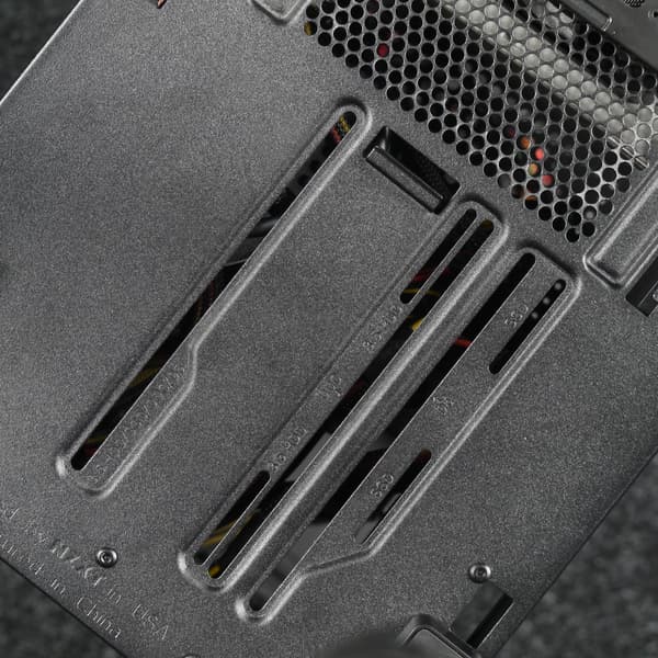 Корпус выглядит довольно элегантно, но, вместе с тем, утилитарно. Тут нет такой воздушности, как в дизайне H510 Elite, однако никаких аляповатых элементов и тяжеловесных конструкций также нет. Достигается это использованием прямых граней со всех сторон корпуса и минимизацией использования пластиковых деталей во внешнем оформлении. Внешняя часть передней панели тут также стальная. В черном исполнении это почти офисный вариант. Единственное, что смущает для такого применения — это прозрачная стенка. Модификации со всеми стальными стенками производитель не предлагает, как и варианта с непрозрачной стеклянной стенкой.
