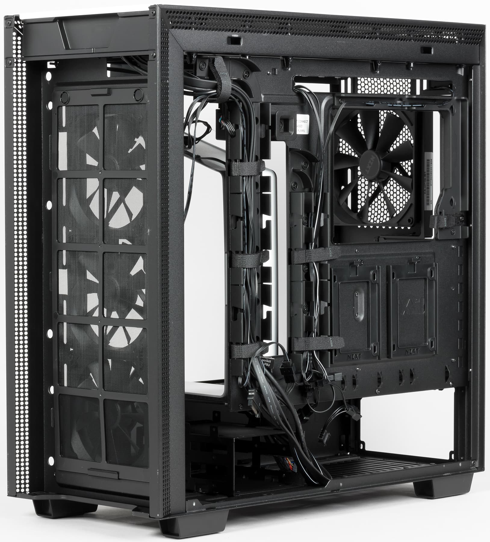 Шасси, на котором базируется корпус, можно считать среднебюджетным, однако разработчики явно вложили много труда в его доработку, сделав внутреннее устройство удобным для сборщика. С точки зрения эксплуатации и удобства сборки системы данная модель действительно является лучшей из серии H Refresh. Стоит отметить, что разработчики смогли избежать существенного усложнения конструкции, которое часто встречается в случае больших корпусов и негативно сказывается на удобстве сборки и дальнейшей эксплуатации.