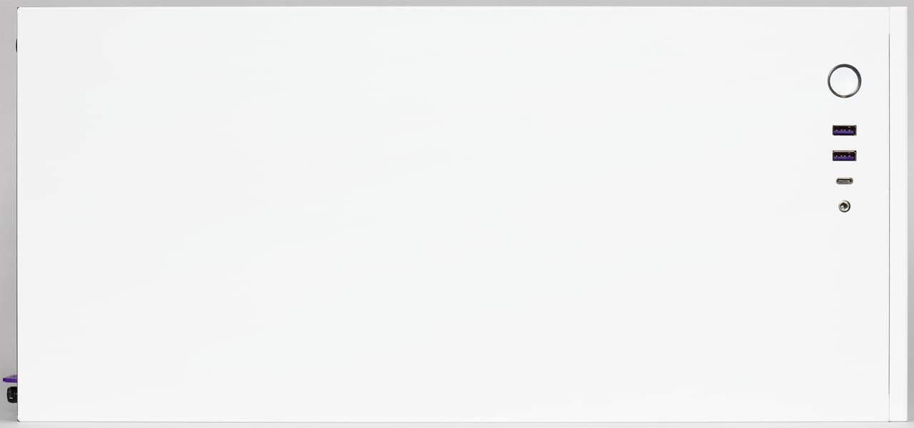 Кнопка включения и порты ввода/вывода, в состав которых входят 2 USB 3.2 Gen 1 (USB 3.0) Type-A, USB 3.2 Gen 2 (USB 3.1) Type-C и разъем для подключения гарнитуры, находятся на верхней стенке в передней части корпуса. Таким образом, корпус позволяет подключать проводные гарнитуры как с цифровым, так и с аналоговым интерфейсом со стороны передней панели. Но разъемов USB все-таки маловато.