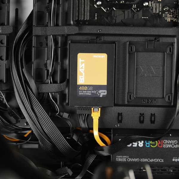 Еще одно место для накопителя формата 2,5 дюйма имеется на кожухе блока питания сбоку, где установлена быстросъемная пластиковая рамка.