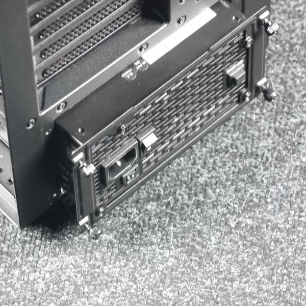 Корпус устанавливается на прямоугольные ножки с накладками из резины средней жесткости, которые обеспечивают ему хорошую устойчивость и позволяют гасить небольшие вибрации, исходящие от вентиляторов и жестких дисков, даже при условии установки на твердой поверхности.