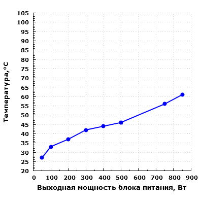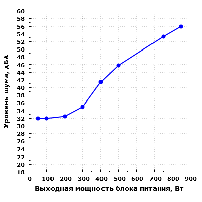 С точки зрения акустической эргономики, блок питания обеспечивает комфорт при выходной мощности в пределах 300 ватт. Однако на мощности свыше 500 Вт шум уже очень высокий.