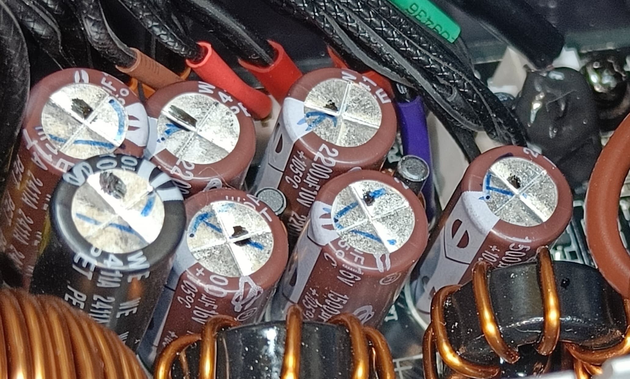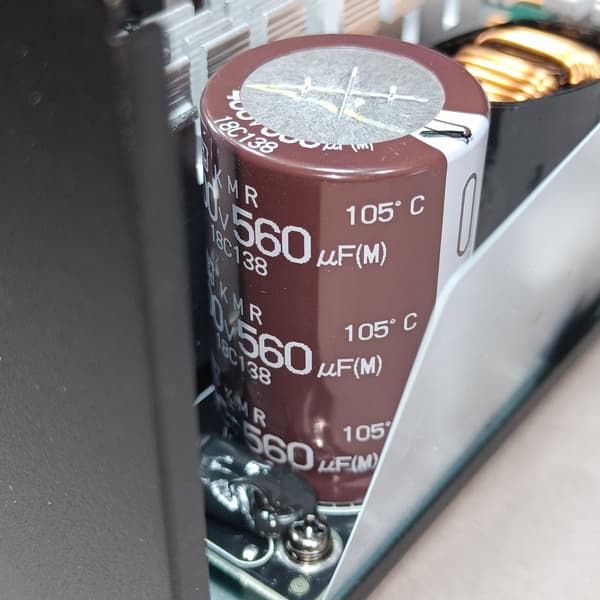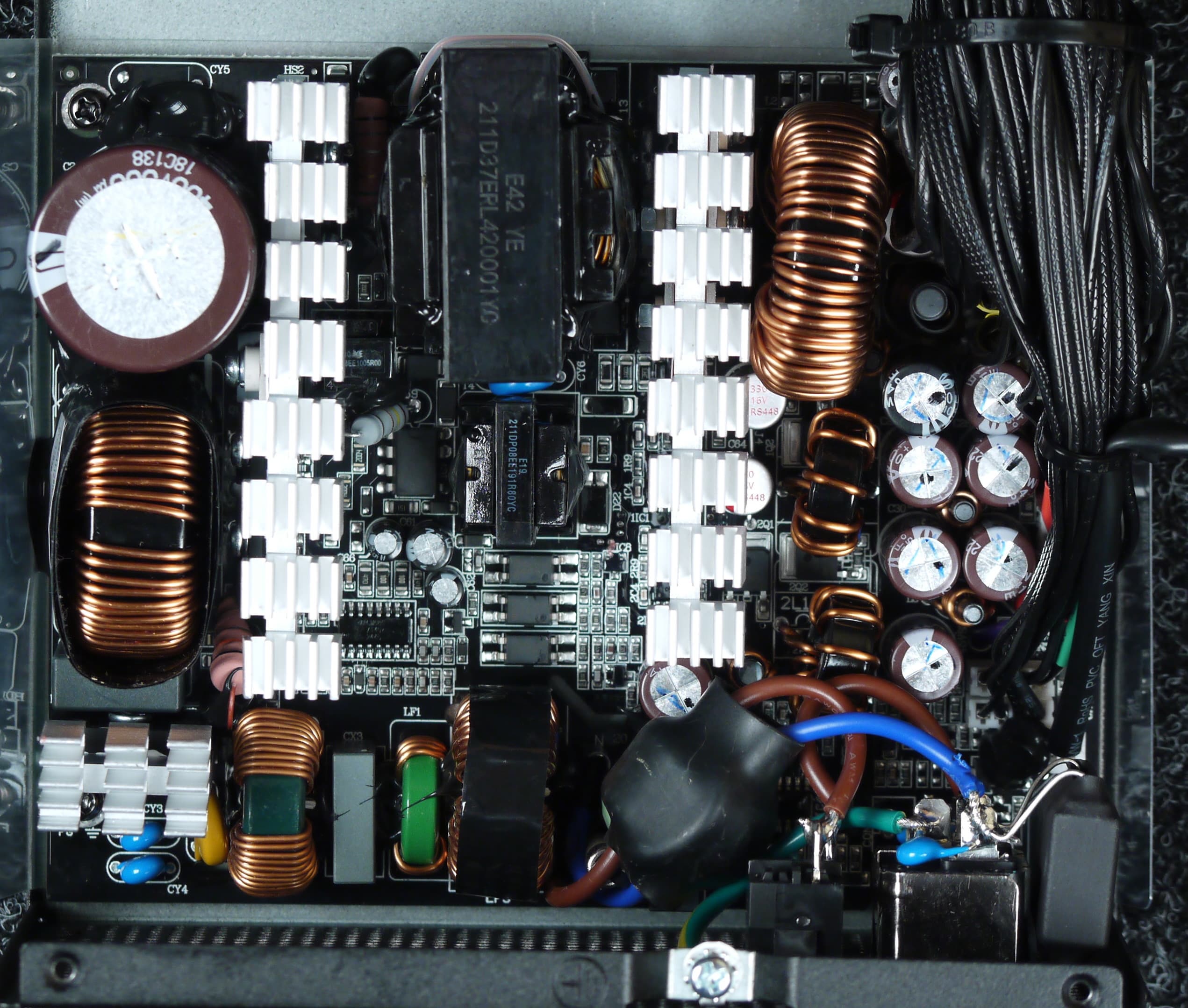Полупроводниковые элементы высоковольтных цепей размещены на одном радиаторе, у входного выпрямителя радиатор отдельный. Выпрямитель традиционный, на диодах Шоттки, а не синхронный.