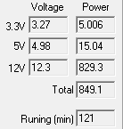 При типичном распределении мощности по каналам отклонения от номинала не превышают 3% по каналу +3.3VDC, 3% по каналу +5VDC и 3% по каналу +12VDC.
