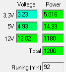 С другой стороны, иногда нужно объективно оценить экономичность компьютерного блока питания. Под экономичностью мы подразумеваем потерю мощности при преобразовании электроэнергии и ее передаче к конечным потребителям. И для оценки этого КПД не нужен, так как можно использовать не отношение двух величин, а абсолютные значения: рассеиваемую мощность (разницу между значениями на входе и выходе блока питания), а также потребление энергии источником питания за определенное время (день, месяц, год и т. д.) при работе с постоянной нагрузкой (мощностью). Это позволяет легко увидеть реальную разницу в потреблении электроэнергии конкретными моделями БП и при необходимости рассчитать экономическую выгоду от использования более дорогих источников питания.