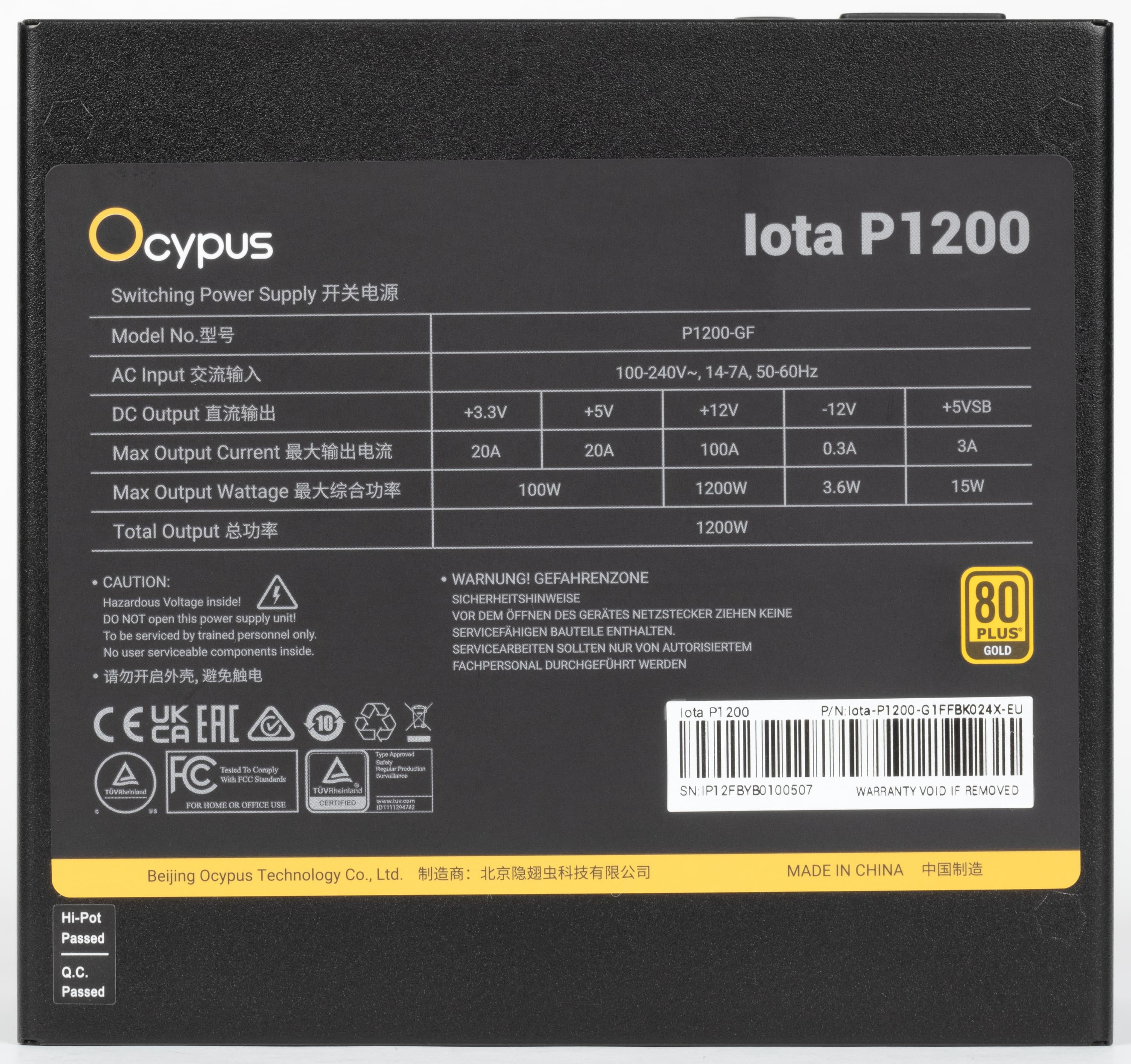 В этот раз мы познакомимся с блоком питания Ocypus Iota P1200 мощностью 1200 Вт, который имеет сертификат 80Plus Gold и укомплектован исключительно японскими конденсаторами. Блок питания соответствует стандарту ATX 3.1 и позволяет питать очень мощные современные видеокарты через 16-контактный разъем PCIe 5.1 (12V-2×6).