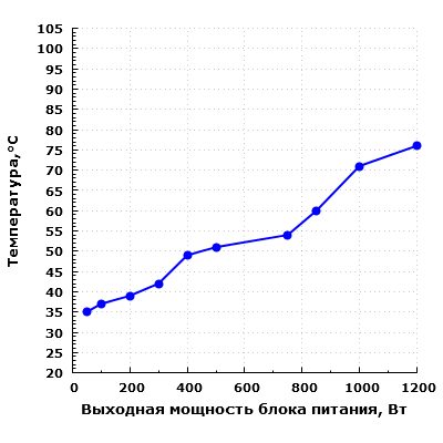 Также стоит учитывать, что в случае работы с остановленным вентилятором температура компонентов внутри БП сильно зависит от окружающей температуры воздуха, и если та установится на уровне 40-45 °C, это может привести к более раннему включению вентилятора.