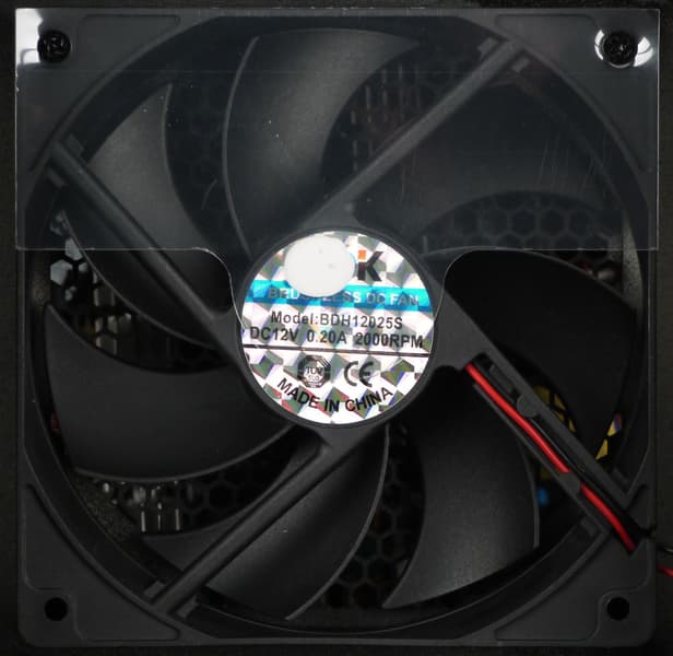 В блоке питания установлен вентилятор BOK BDH12025S типоразмера 120 мм. Вентилятор основан на подшипнике скольжения и имеет скорость вращения 2000 оборотов в минуту, согласно официальным данным. Подключение двухпроводное через разъем.
