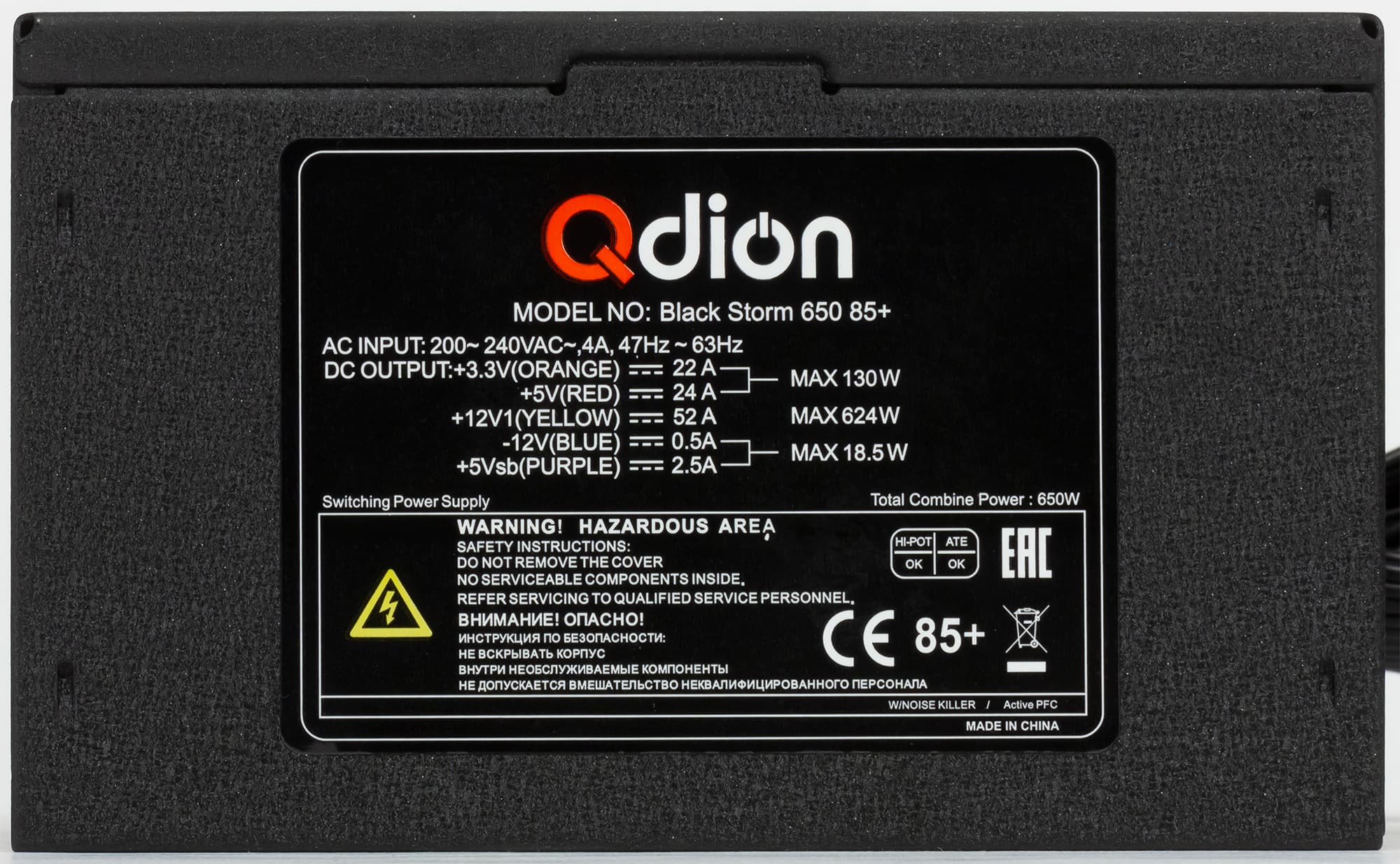 Мы продолжаем знакомство с продукцией под торговой маркой Qdion. На этот раз в фокус нашего внимания попал бюджетный источник питания Qdion Black Storm 650. Нам на тестирование был представлен предсерийный экземпляр нового блока питания, не снабженный розничной упаковкой и руководством пользователя.