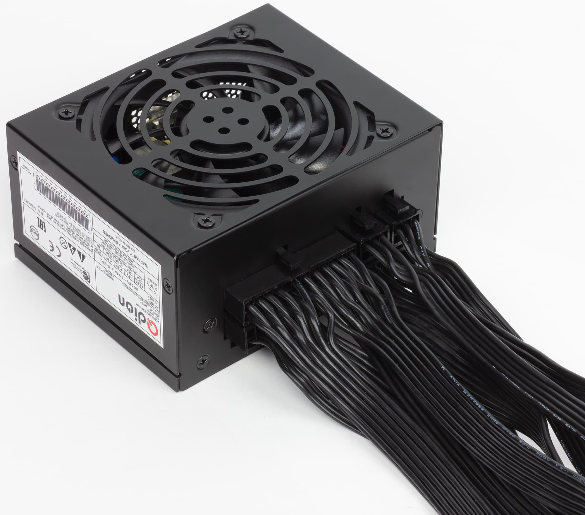 Провода у блока питания относительно короткие, но так как он в первую очередь предназначен для компактных корпусов, подобной длины в большинстве случаев будет вполне достаточно. С другой стороны, можно было бы укомплектовать блок питания проводами разной длины для основных разъемов питания, поскольку в миниатюрных корпусах укладка проводов представляет собой довольно затратную по трудоемкости задачу, так что лучше иметь набор проводов разной длины, раз уж у блока питания все провода съемные.