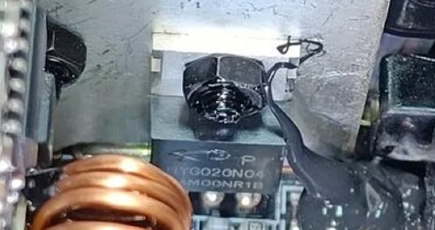 Основной преобразователь (инвертор) тут несколько сдвинут в сторону сетевого разъема относительно его обычного положения примерно в центре основной платы. Сам инвертор представляет собой комбинацию четырех транзисторов CS20N50FF, которые размещены на пластинчатых радиаторах попарно.