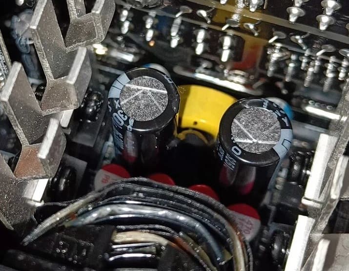 Все конденсаторы в блоке питания имеют японское происхождение. Это продукция под торговыми марками Nippon Chemi-Con и Rubycon.