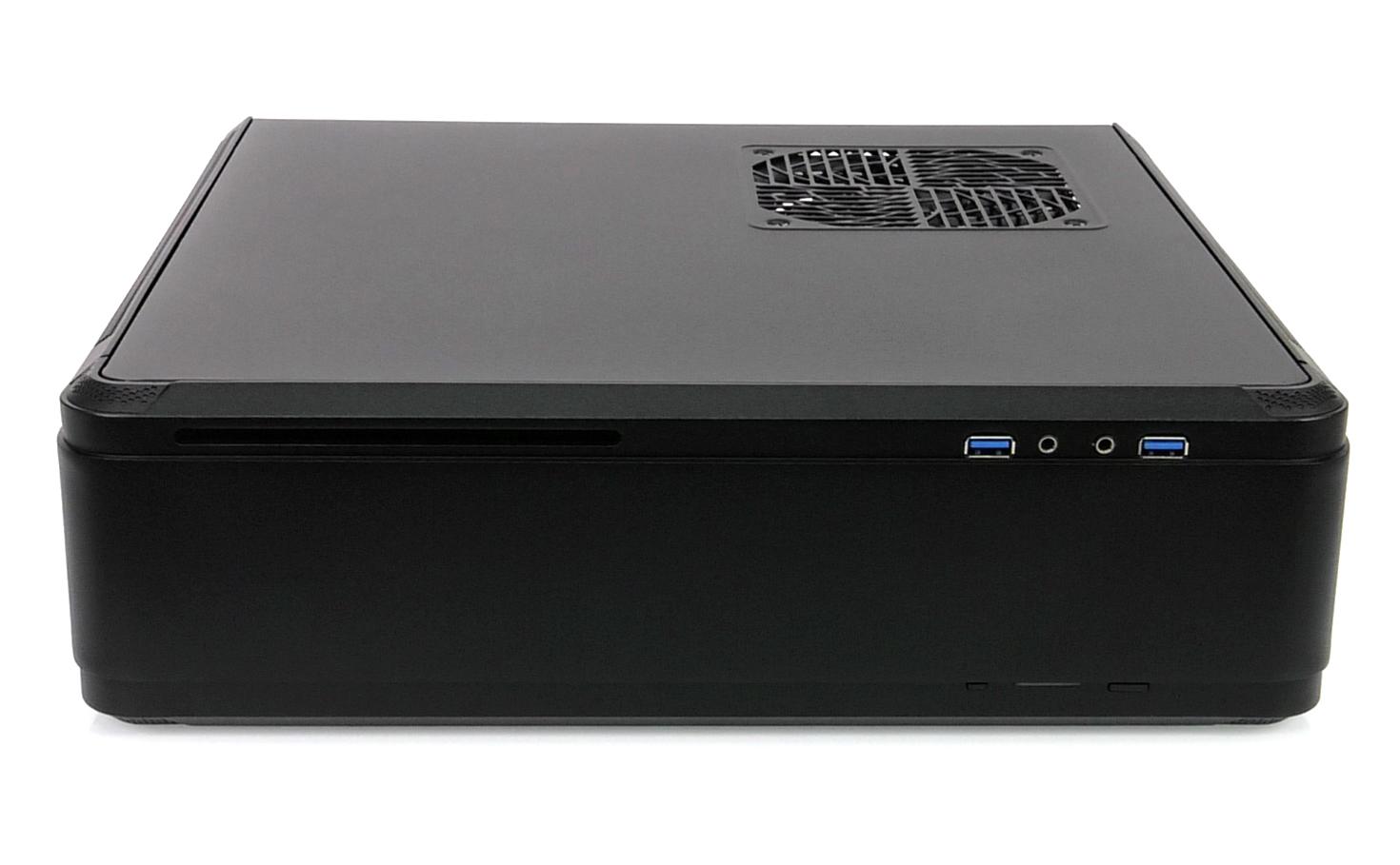 Проведенное тестирование показало, что конструкция корпуса отлично подходит для охлаждения как центрального процессора, так и горячей видеокарты. Под длительной максимальной нагрузкой процессор, пусть и слабый, нагрелся всего до 46 градусов. Видеокарта с пассивным охлаждением под обдувом всего одного корпусного вентилятора нагрелась до 83 градусов, в то время как во многих других компактных корпусах ее температура быстро достигала 95-100 градусов.