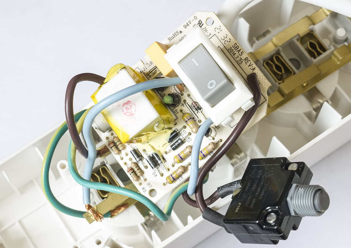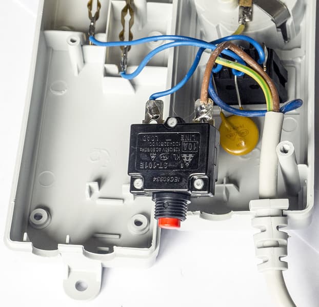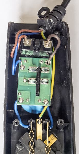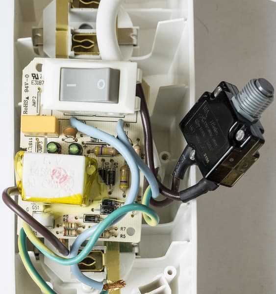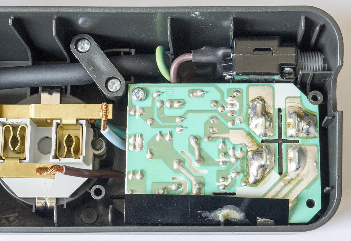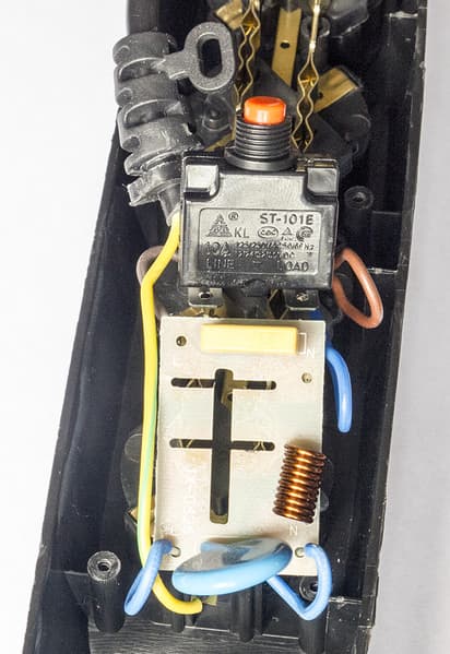 | Выключатель | На корпусе написано «15А 250V AC». Распространенного «качельного» типа, поломки случаются, замена несложная. «Качелька» узкая, но усилие комфортное, хотя может быть срабатывание от случайного касания. |
