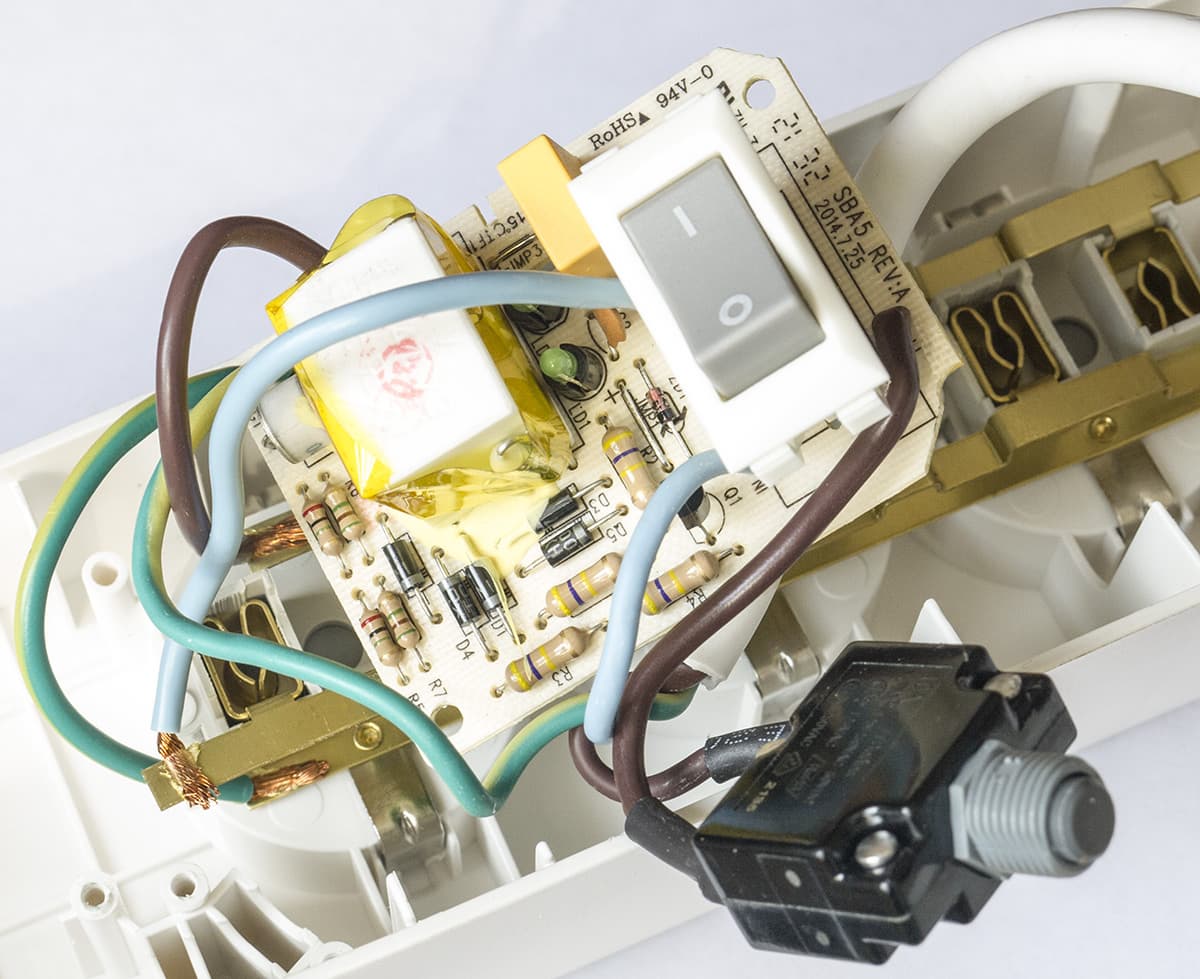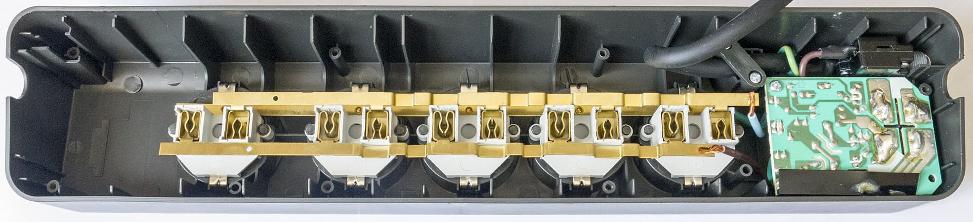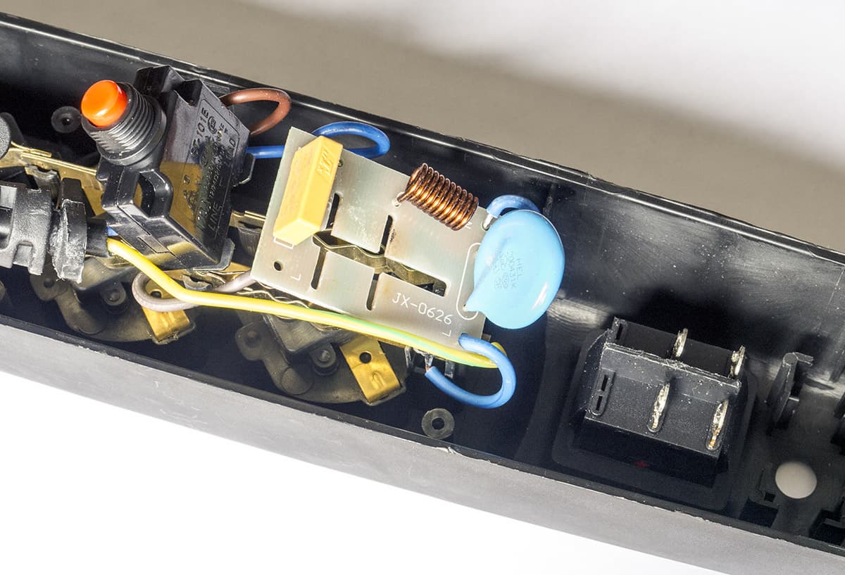 Следующий критерий оценки: поскольку речь о сетевых фильтрах, необходимо сказать про обеспечиваемую ими защиту от всплесков напряжения и ВЧ-помех. Проводить какие-либо измерения не представляется возможным — для этого потребовалась бы весьма специфическая аппаратура, поэтому оценка дается нами на основе анализа схемотехнических решений.