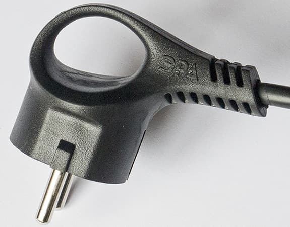 | Кабель | 3×0,75 мм² — для длительной работы с заявленным макс. током 10 А мало. Вилка Schuko CEE 7/7 (с доп. отверстием для заземляющего штыря). Защита от перетирания в месте входа в корпус есть, крепление хоть и без дополнительного зажима, но довольно прочное благодаря достаточно толстой стенке корпуса в этом месте. |