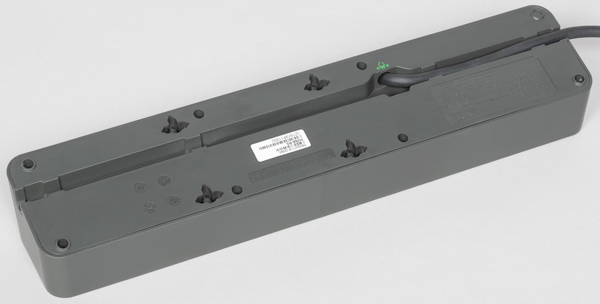 Имеющийся ВЧ-фильтр более совершенный, чем у образцов APC, хотя и не соответствует в полной мере приведенной выше «классической» схеме. Индикация состояния защиты поможет выявить ее неисправность, однако показ другим цветом отсутствия заземления и правильной фазировки не только имеет сомнительную полезность в общем случае, но еще и может не быть воспринят правильно, если владелец забудет значения разных цветов индикатора.