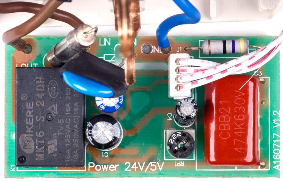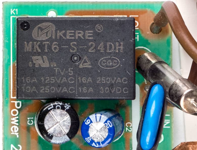 Нагрузкой во всех экземплярах управляет реле MKT6-S-24DH; к сожалению, datasheet на него найти не удалось, поэтому подробности о параметрах привести не получится.