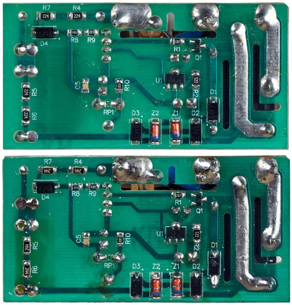 В ранних экземплярах РН Sven установлены конденсаторы на 275 и 280 вольт; это явно маловато с учетом желательности сохранения работоспособности устройства при повышении входного напряжения до 380-400 В. Правда, эти конденсаторы имеют маркировку «X2», то есть они не должны загораться при выходе из строя и поддерживать горение. Кроме того, они должны выдерживать импульсное воздействие очень высокого напряжения — «Х1» до 4 кВ, «Х2» до 2,5 кВ, но речь именно о всплесках, а не о продолжительной работе с напряжениями, существенно превышающими номинальное.