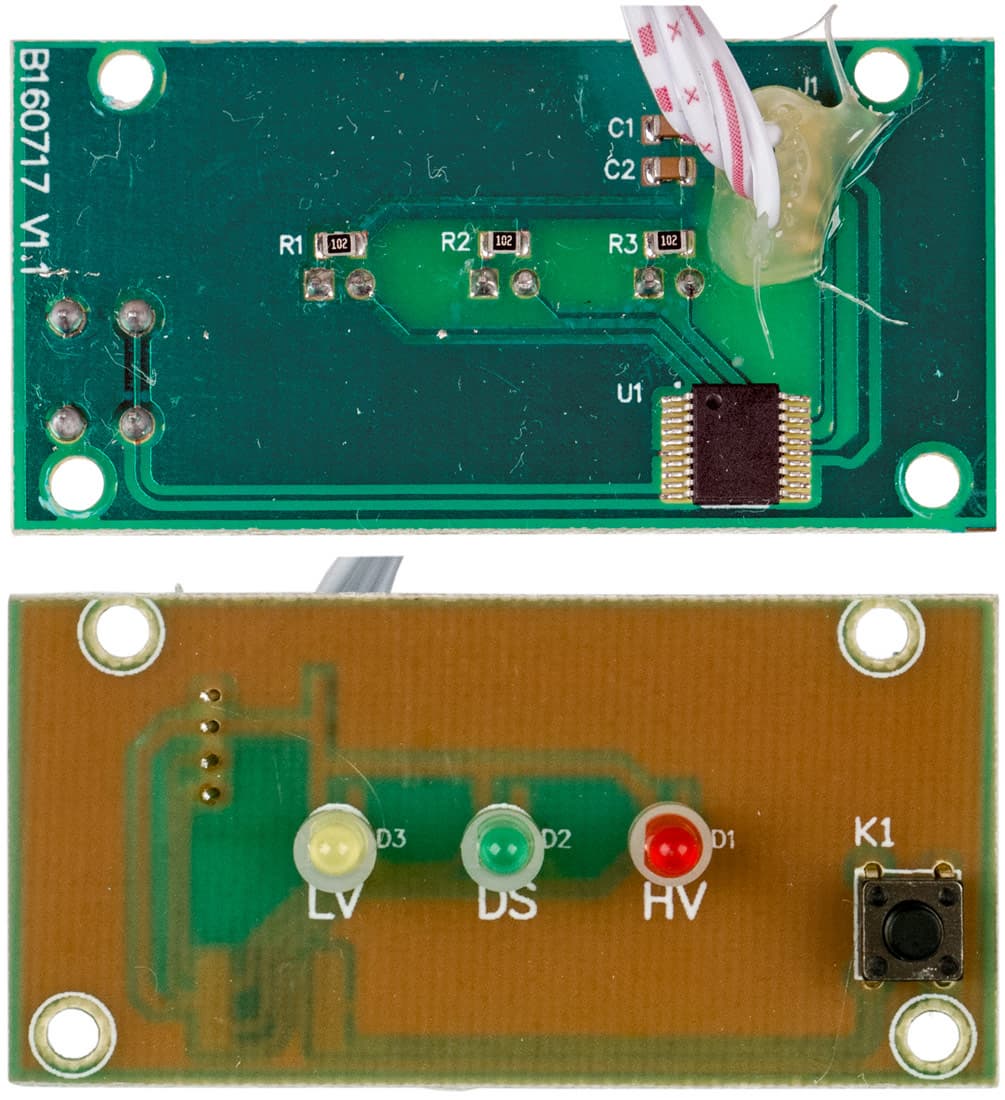 У RN-15 управление основано на единственной микросхеме. Маркировка отсутствует, но в представительстве компании нам подсказали, что это микроконтроллер EM78P372N производства Elan Microelectronics, имеющий встроенные детекторы уровня напряжения. Платы сделаны вполне аккуратно, исключая разве что наплыв фиксирующего компаунда в месте распайки соединительного шлейфа.