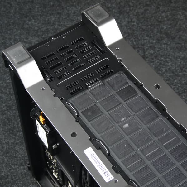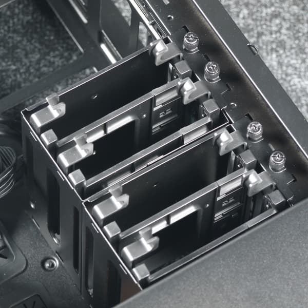 Верхний отсек состоит из двух частей, каждая из которых рассчитана на установку двух накопителей, при необходимости можно демонтировать любую из них или обе. Нижний отсек имеет аналогичную конструкцию и представляет собой половину от верхнего отсека.