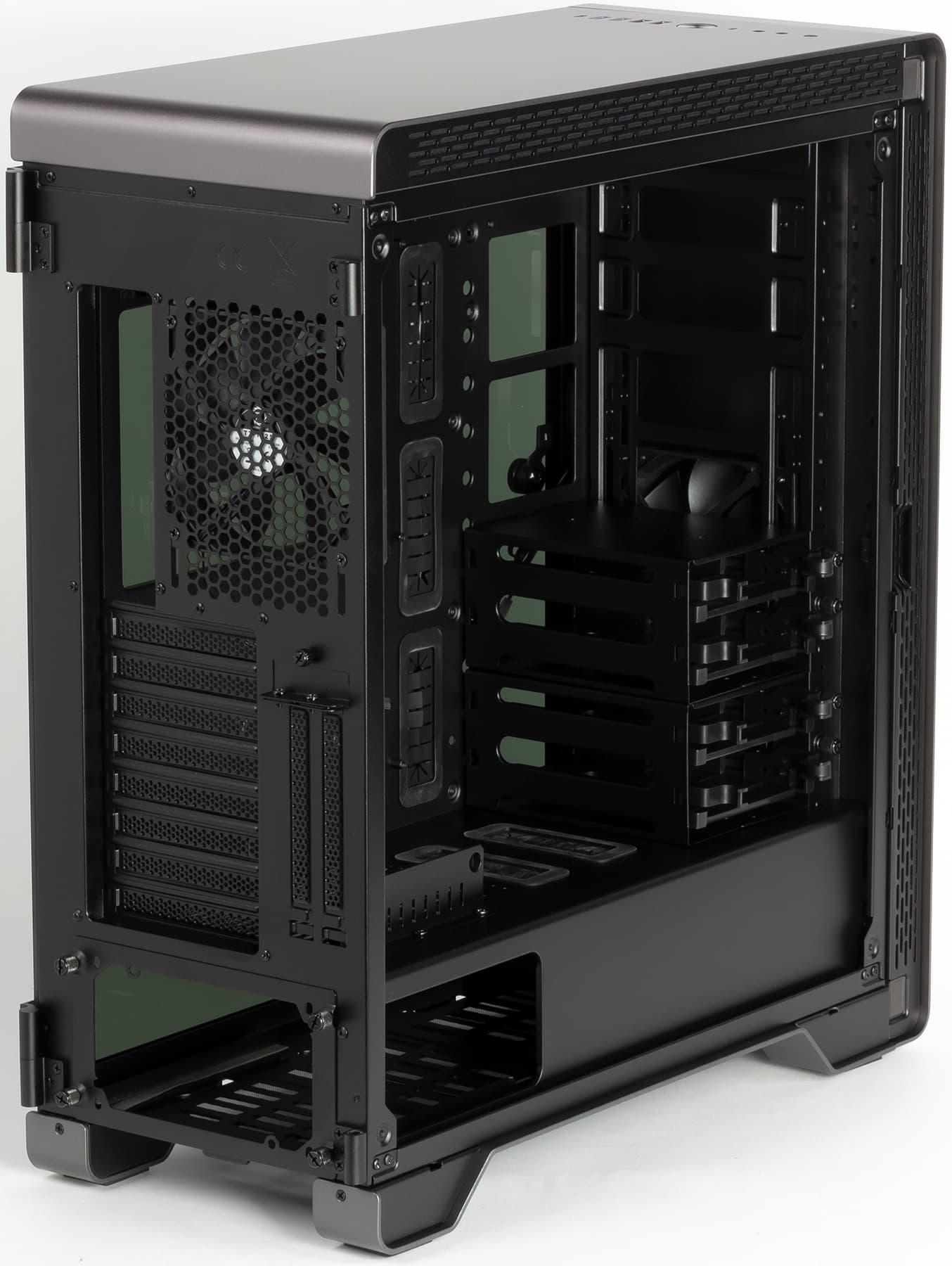 Шасси корпуса выполнено из стали толщиной около 1 мм и имеет достаточно высокую жесткость, что обусловлено использованием тяжелых внешних панелей из закаленного стекла толщиной 4 мм.