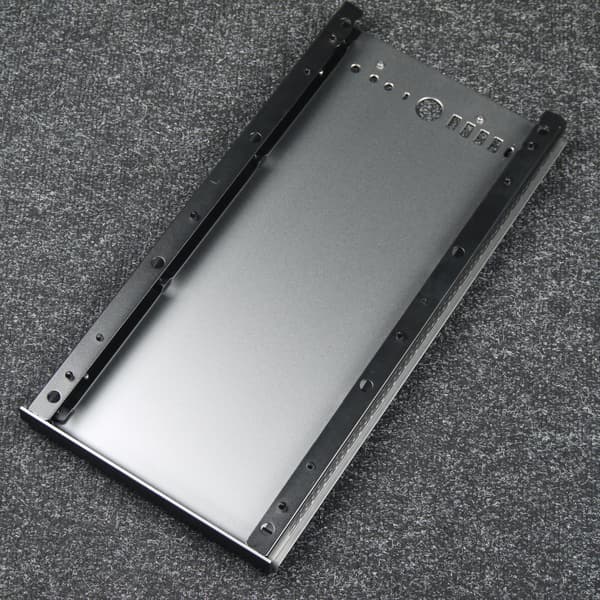 Передняя и верхняя панели имеют схожую конструкцию, представляющую собой комбинацию из стальной рамы и накладки из алюминиевого сплава. Крепление панелей осуществляется стандартным способом — за счет распорных элементов конусной формы, которые вставляются в соответствующие отверстия в шасси. Ничего откручивать тут не надо.