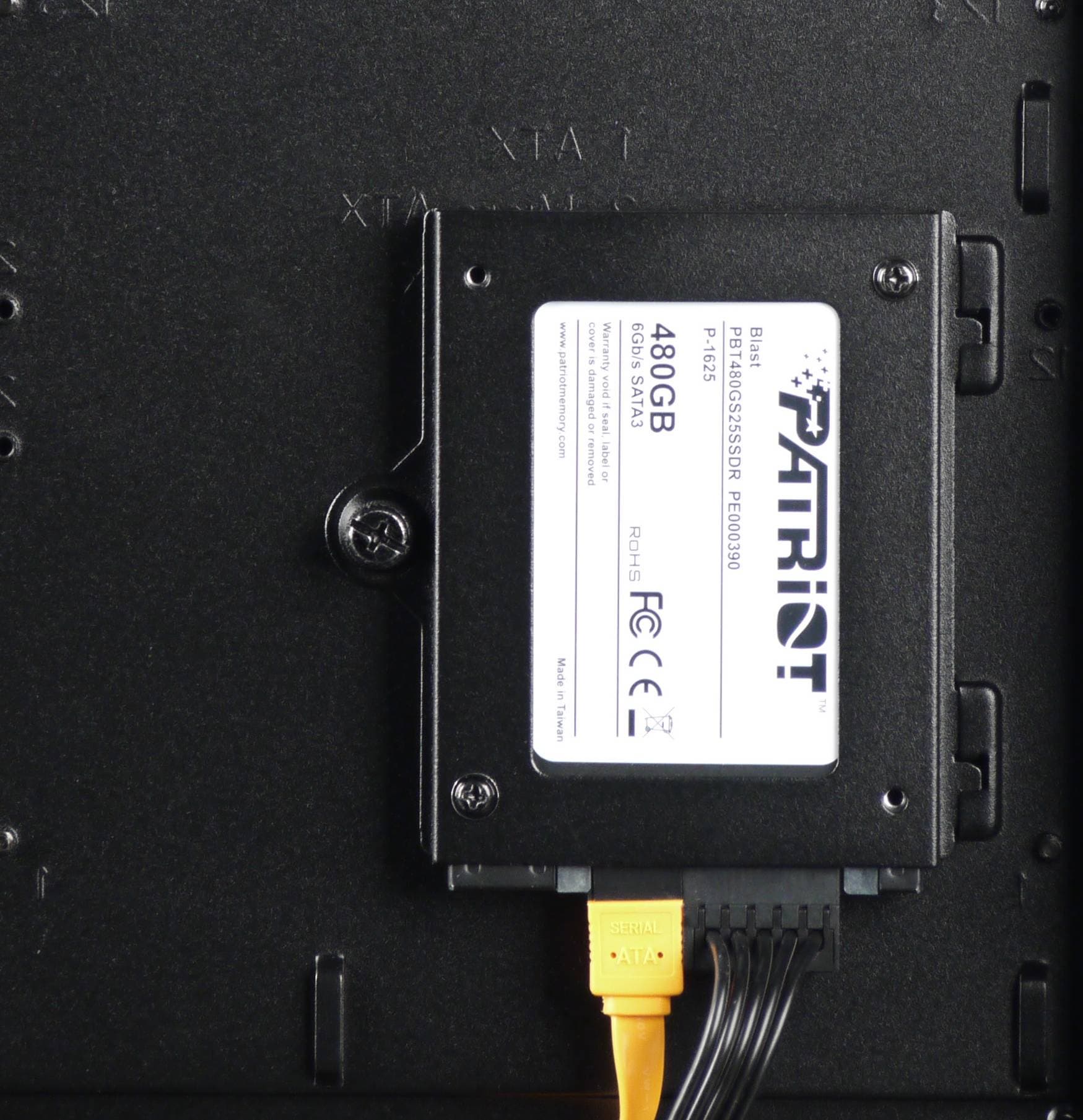 Для накопителя формата 2,5 дюйма предусмотрен контейнер, который установлен на обратной стороне основания для системной платы. Крепление контейнера — на винтах. Отметим, что для установки в него накопителя не обязательно демонтировать контейнер, так как винты, фиксирующие накопитель, вкручиваются с лицевой стороны, что удобно.