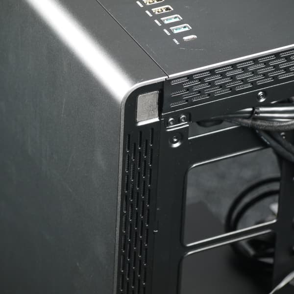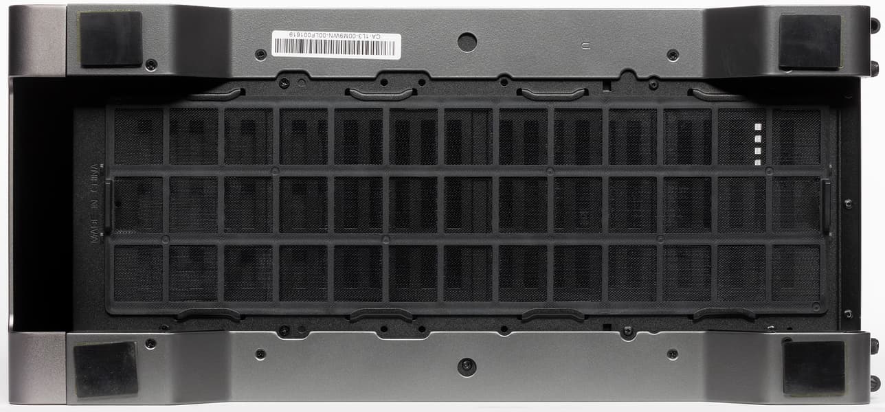 Корпус получился удачный: лаконичный внешний вид и удобный процесс сборки системы дополняют друг друга, что встречается не так уж часто. Есть некоторые претензии к системе вентиляции: отсутствие возможности централизованного управления вентиляторами, которых установлено три штуки, и не очень удобные пылевые фильтры. Установка полноразмерных дисков реализована тоже бюджетно, никакой амортизации не предусмотрено, зато есть их обдув.