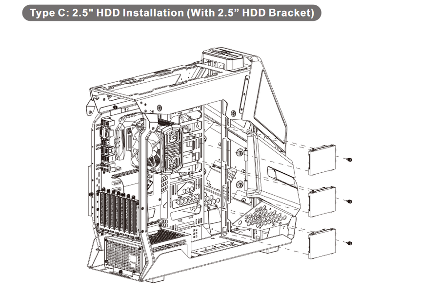 В корпусе можно установить до трех радиаторов толщиной 64 мм, два из которых могут быть типоразмера 280 или 360 мм, а один — 420 мм. Спереди можно установить низкопрофильный радиатор толщиной 40 мм и длиной 480 мм. Наиболее удачным вариантом является размещение радиатора сверху.