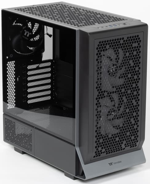 К нам на тесты попал корпус Thermaltake Ceres 300 TG ARGB, цены на него во время тестирования начинались с 10 тысяч рублей, предлагаются три варианта расцветки: доставшийся нам черный, а также снежно-белый и зеленый Matcha Green.