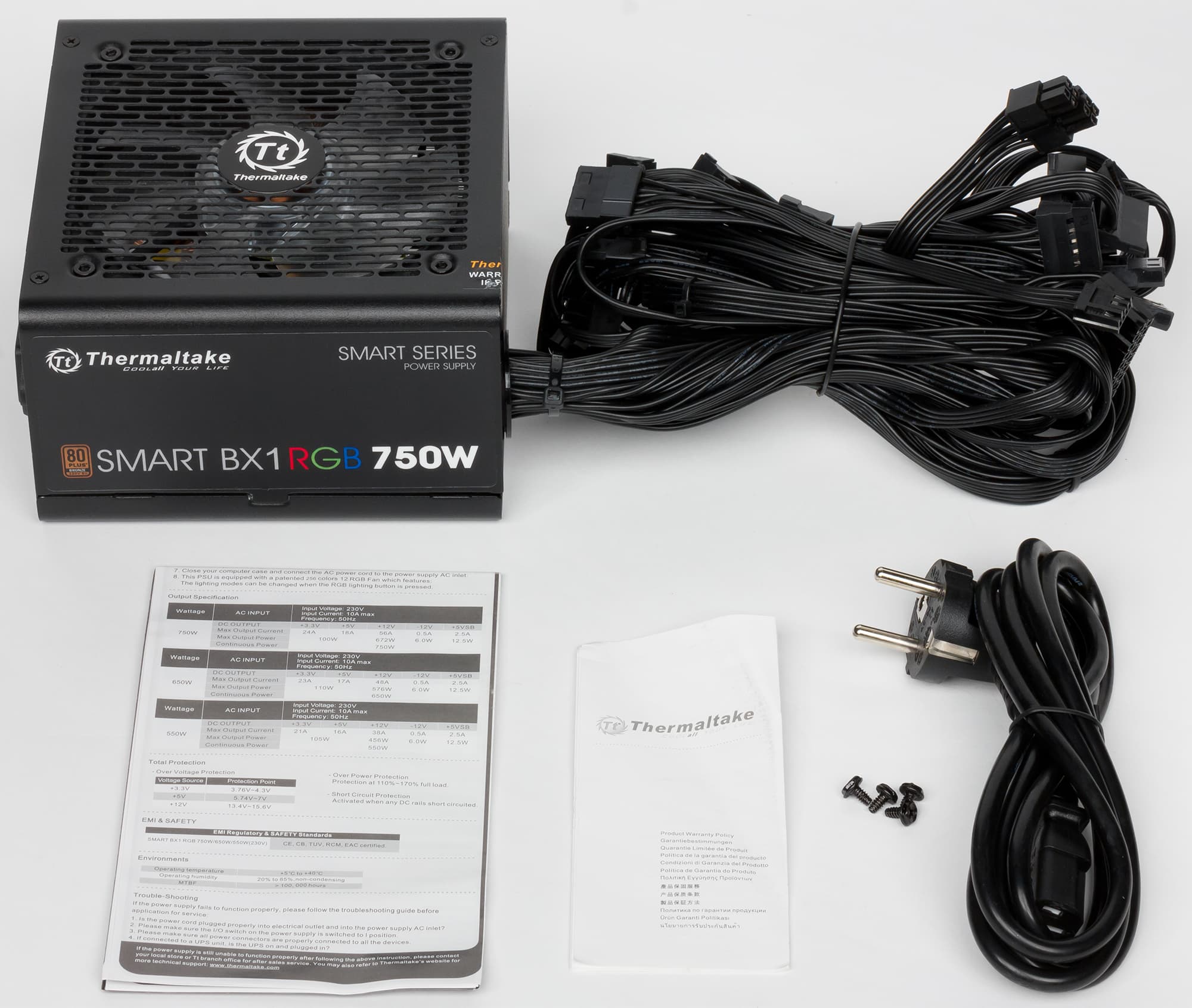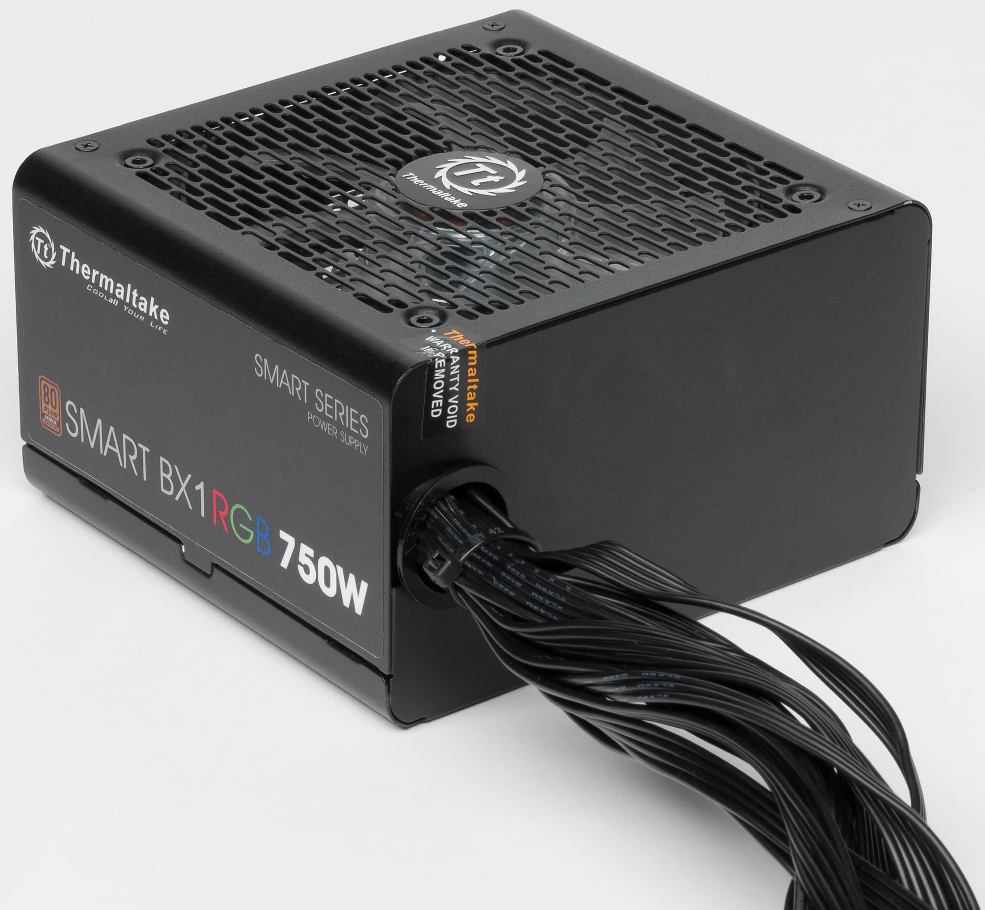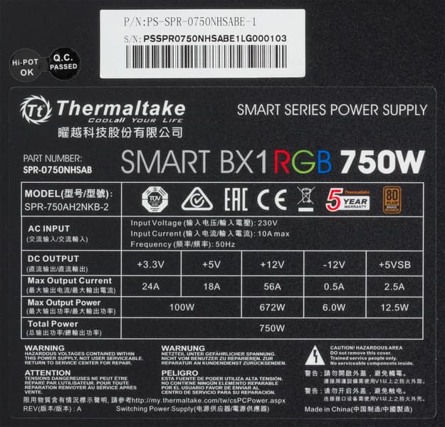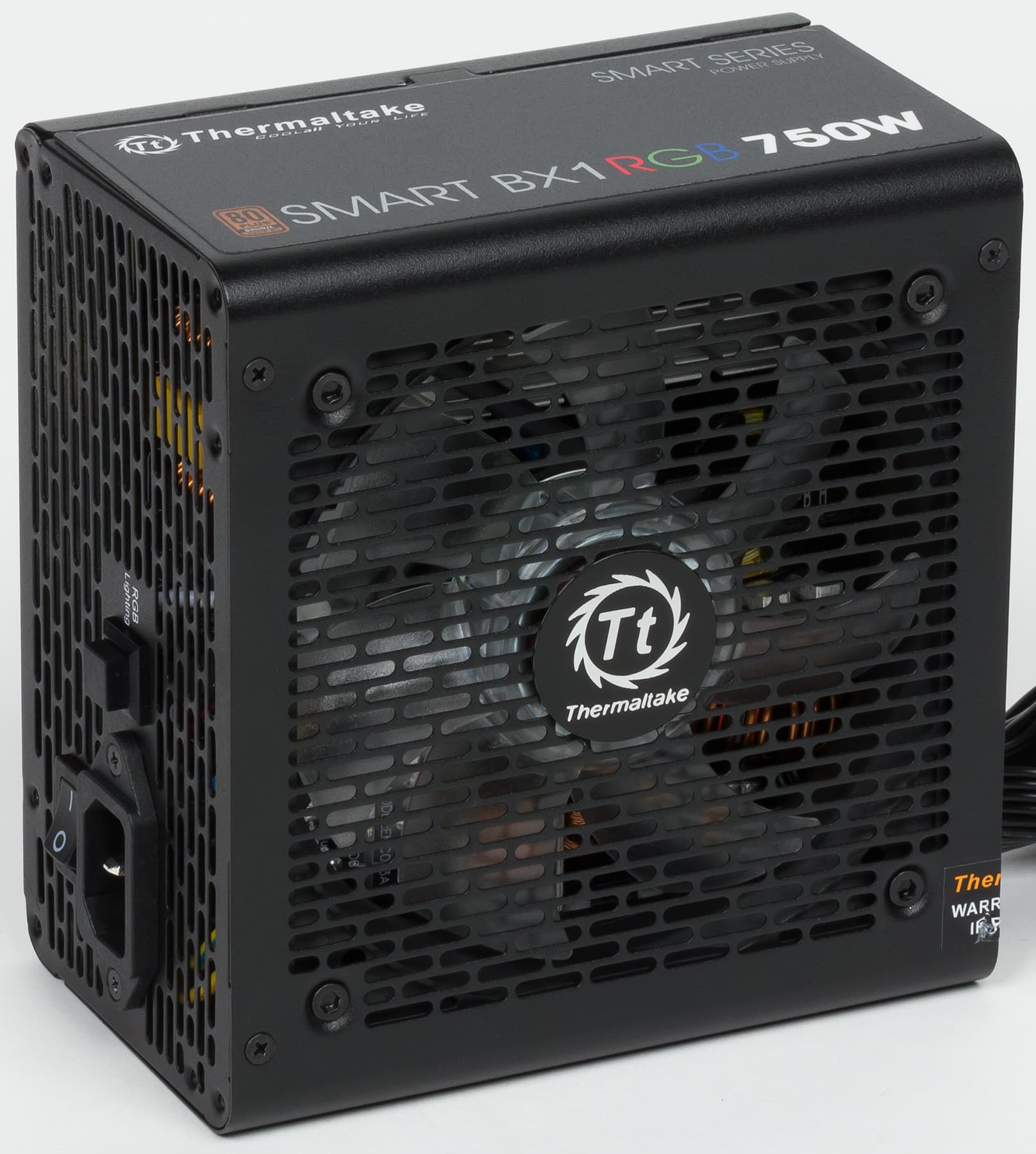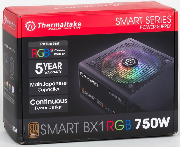 Очередным продуктом в стиле RGB, с которым мы познакомимся, станет бюджетный блок питания компании Thermaltake, имеющий название Thermaltake Smart BX1 RGB 750W. Это старшая модель из группы БП Smart BX1 RGB, в которой еще есть источники питания мощностью 550 и 650 Вт. Также не стоит путать эту группу с блоками питания с похожими названиями: Smart RGB и Smart Pro RGB.