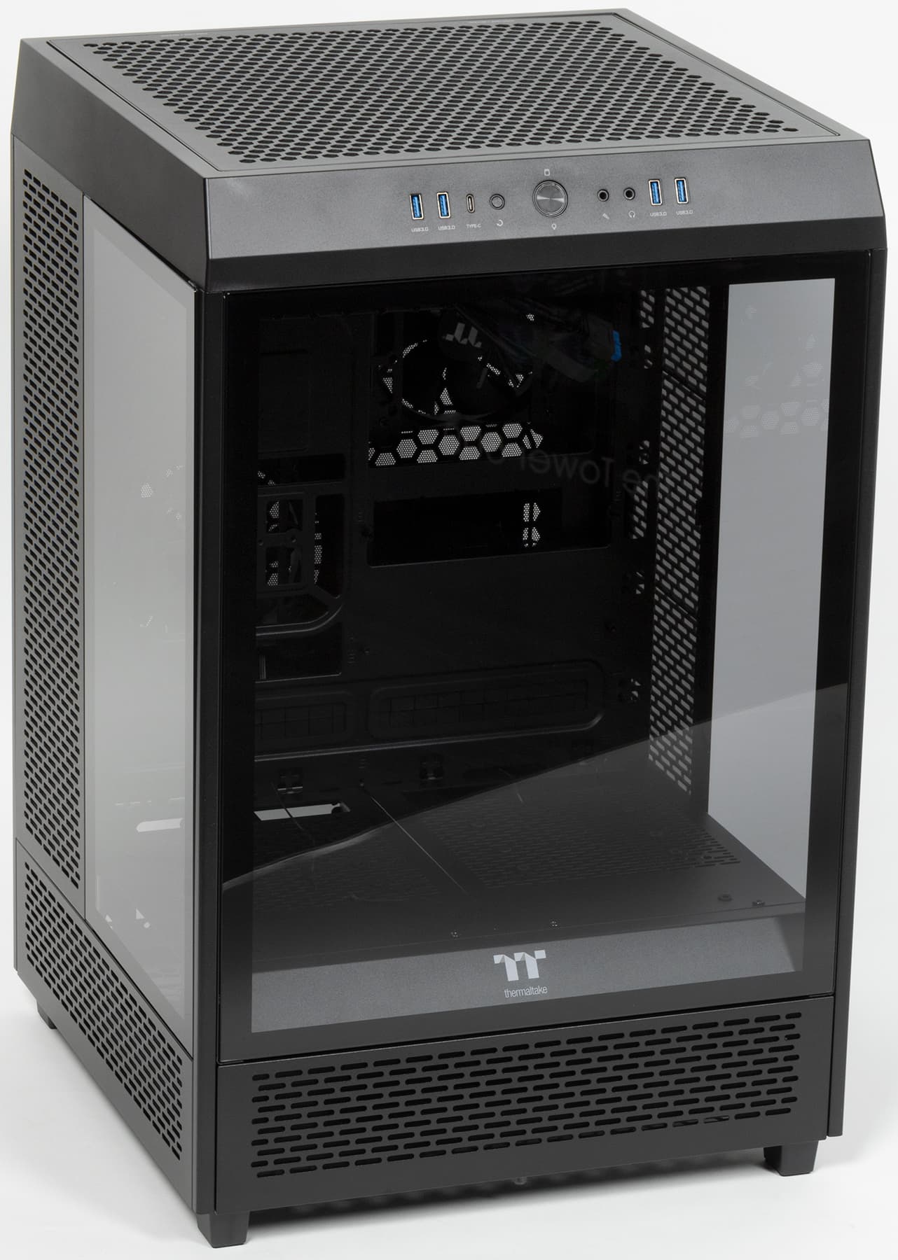 Корпус оставил хорошее впечатление как благодаря достаточно высокому качеству изготовления, так и благодаря удобству сборочного процесса, который не является идеальным, в основном из-за больших габаритов корпуса, но, тем не менее, заслуживает высокой оценки. Из достоинств Thermaltake The Tower 500 стоит отметить, что при необходимости можно снять любую панель и получить доступ к нужному месту внутри корпуса. Имеется возможность установить не только СЖО (в том числе на дискретных компонентах), но и большое количество накопителей, в том числе типоразмера 3,5 дюйма. Отдельно стоит отметить качественно реализованную, насколько это возможно в данном случае, систему защиты от пыли.