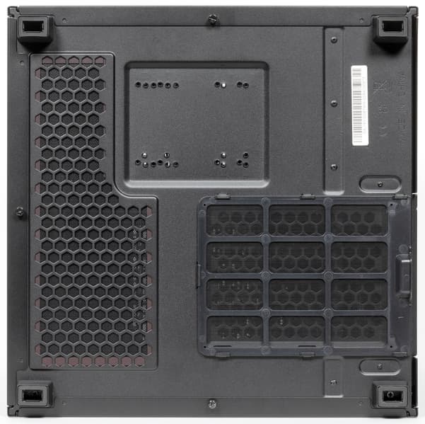 Кожух частично закрывает место установки блока питания, придавая внутреннему виду корпуса аккуратность и законченность. На кожухе имеются посадочные места, на которые можно установить накопители или вентиляторы. Верхняя плоскость кожуха сформирована двумя съемными независимо друг от друга панелями.