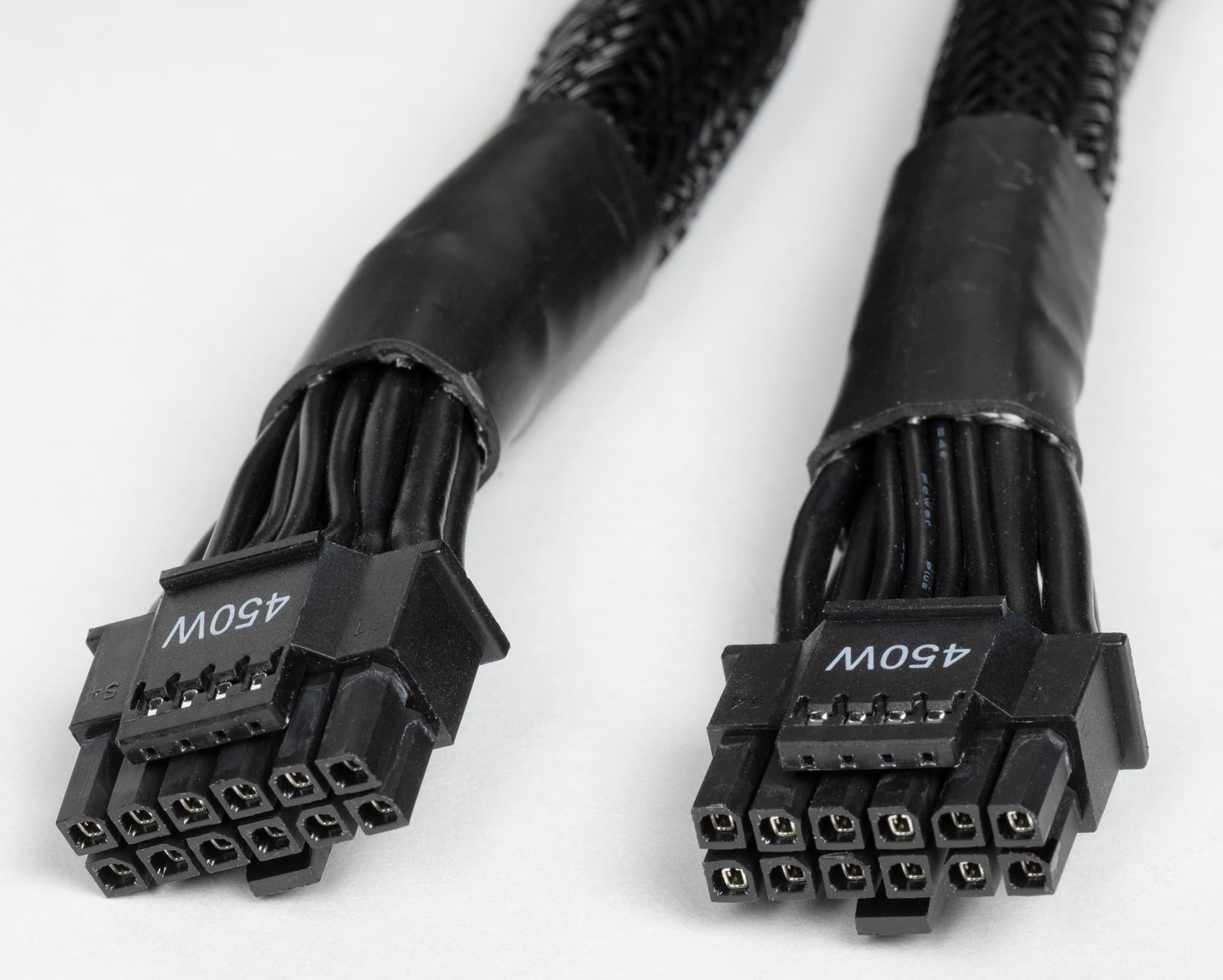 В комплекте (все шнуры питания у БП съемные) имеется один шнур с 16-контактным разъемом PCIe 5.0, в котором 12 контактов являются силовыми, а 4 — сигнальными.