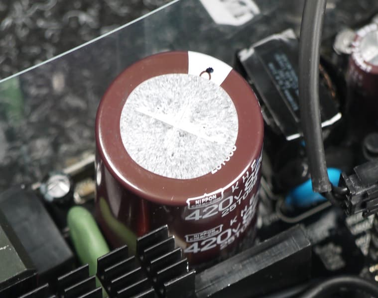 В низковольтных цепях установлены конденсаторы под торговыми марками Nippon Chemi-Con, Nichicon и Capxon, в том числе и некоторое количество полимерных конденсаторов.