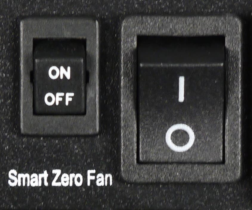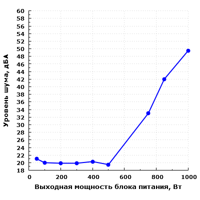 При работе в диапазоне мощности до 500 Вт включительно шум блока питания находится на минимально заметном уровне — менее 23 дБА с расстояния 0,35 метра.