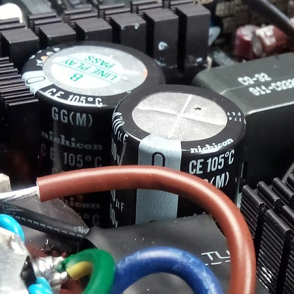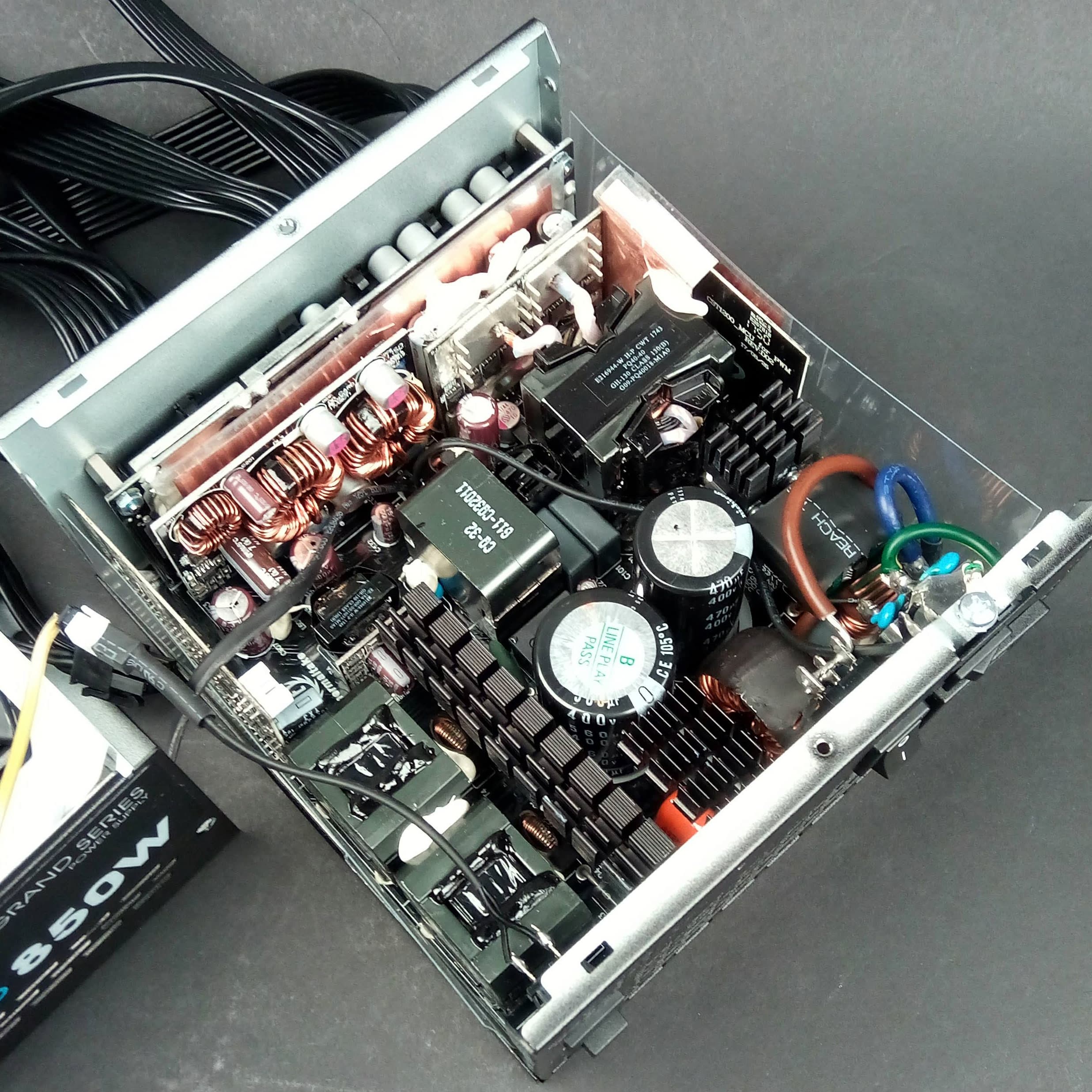 Конденсаторы в блоке питания имеют преимущественно японское происхождение. В основной массе это продукция под торговыми марками Nichicon и Nippon Chemi-Con. Установлено и большое количество полимерных конденсаторов.