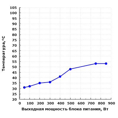 Таким образом, с точки зрения акустической эргономики данная модель обеспечивает комфорт при выходной мощности в пределах 850 Вт, а до 500 Вт блок питания работает очень тихо.