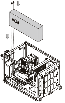Далее можно установить требуемые платы расширения, например видеокарту, которая может достигать в длину до 330 мм, по заявлению производителя. Более реалистичная длина видеокарты — около 300 мм.