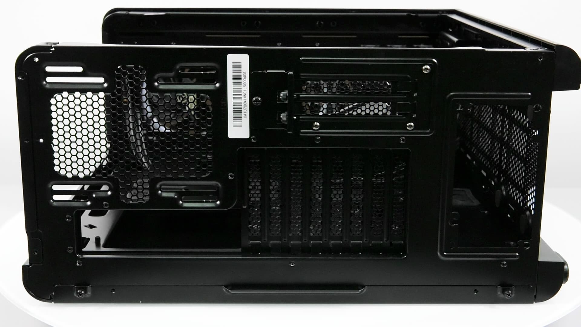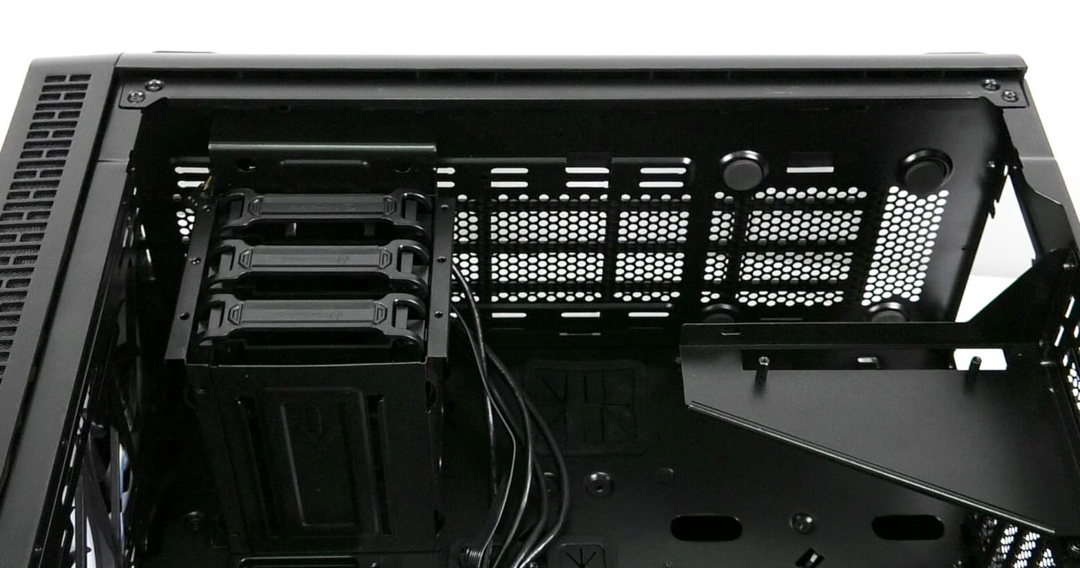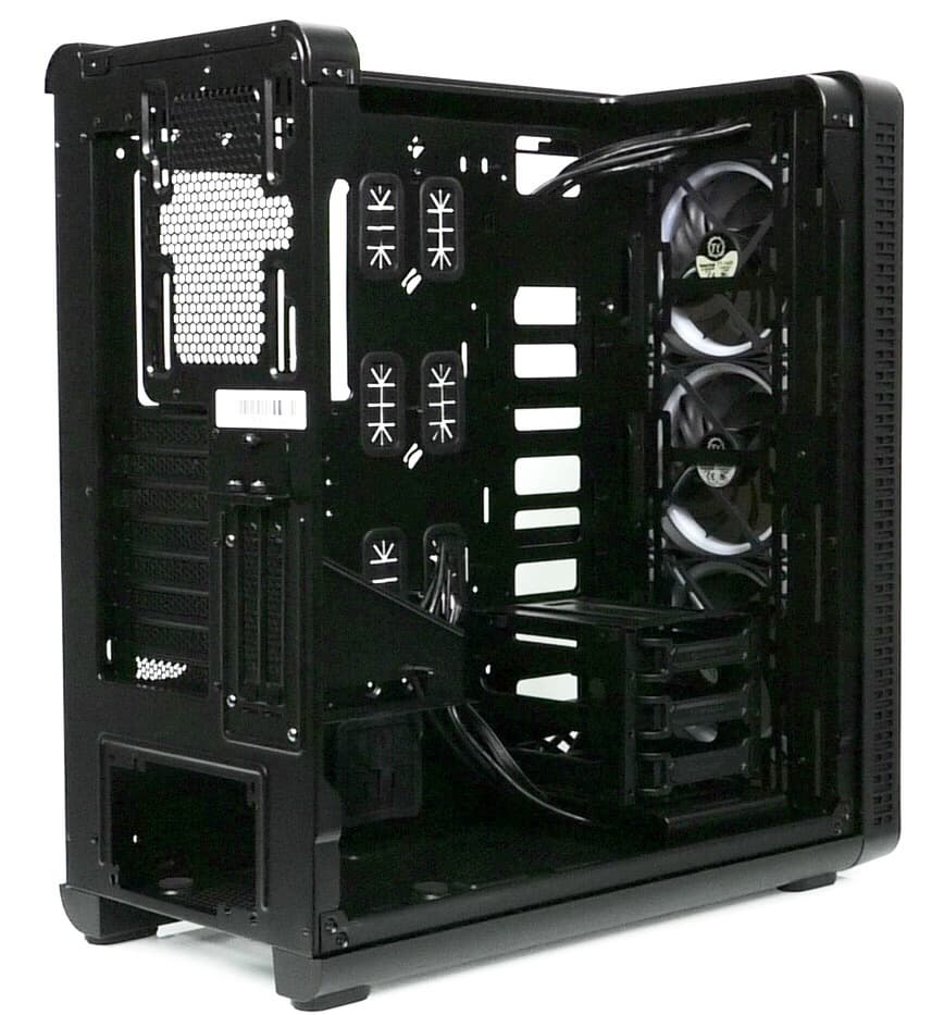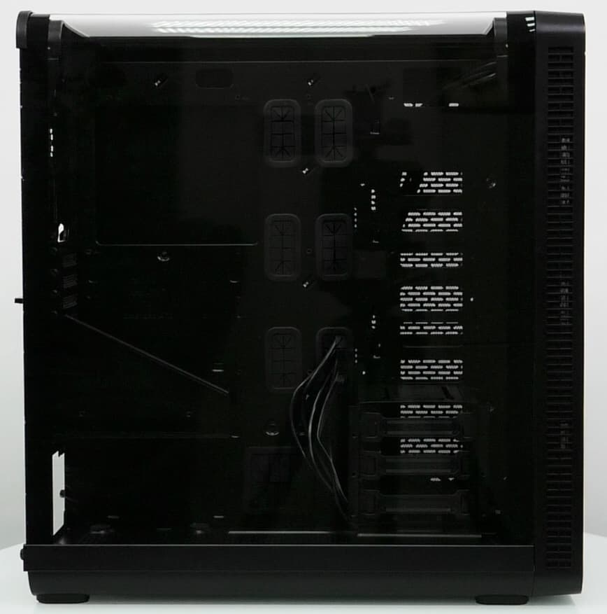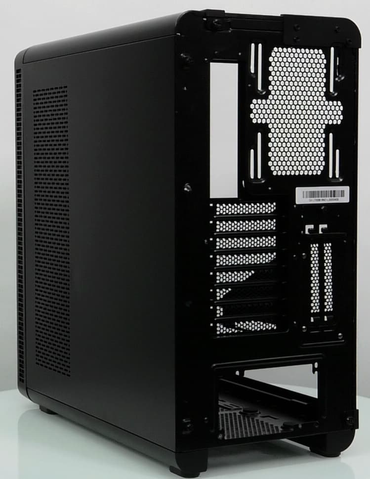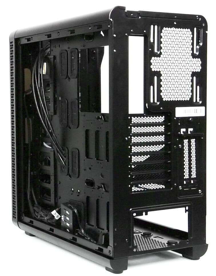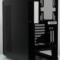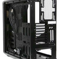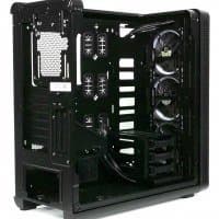 Компоновочные решения данной модели определяются современными тенденциями корпусостроения. В данном случае разработчики отказались от отсека для устройств формата 5,25″, а привычный отсек для устройств 3,5″ расположен около передней стенки шасси, но присутствует он в усеченном виде — всего на три диска.