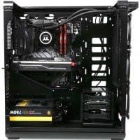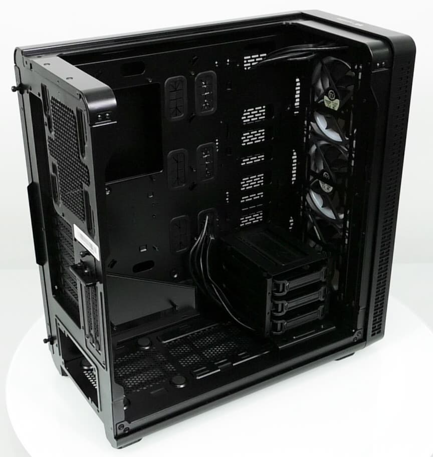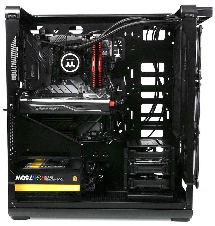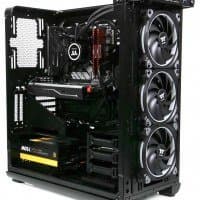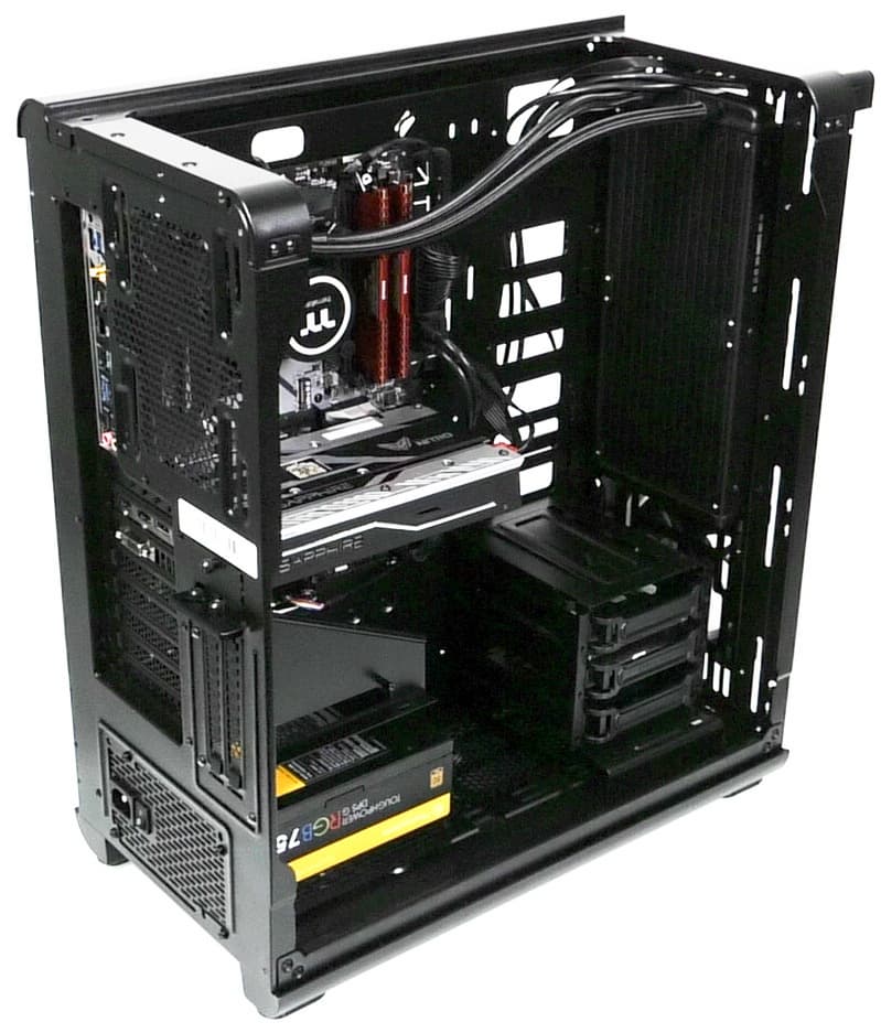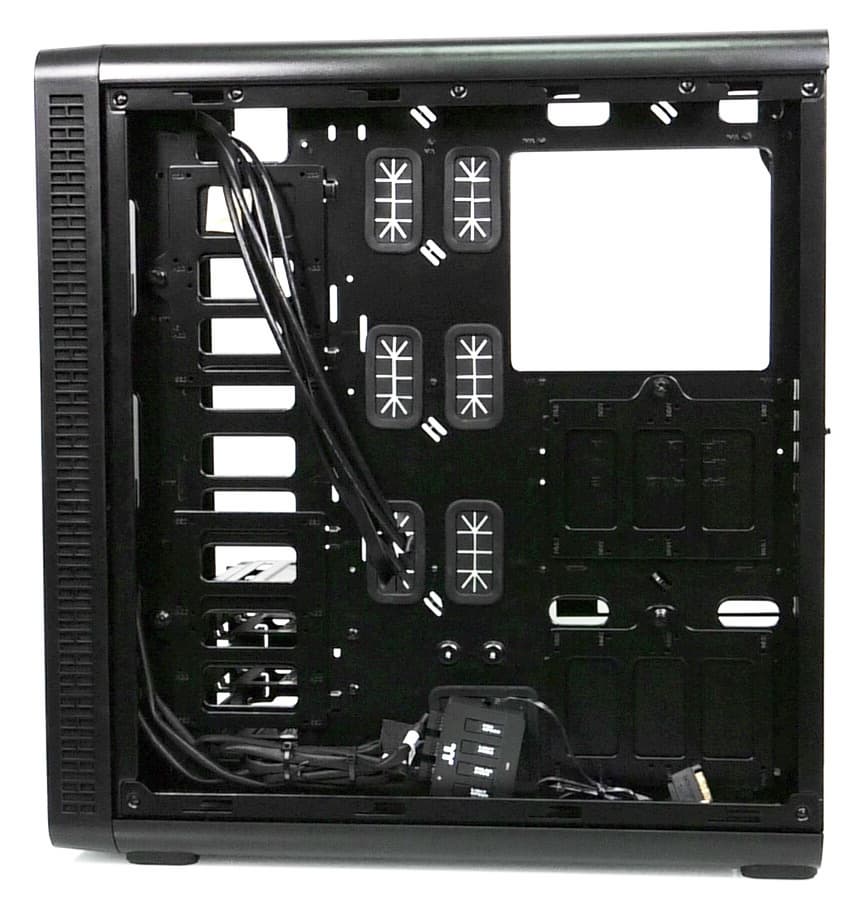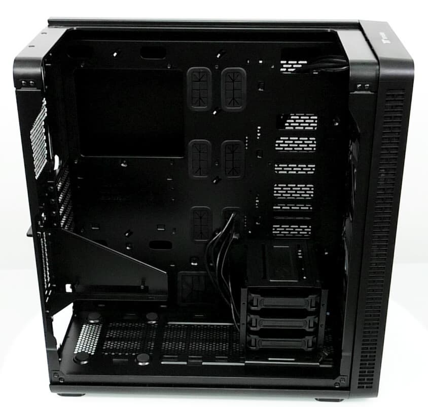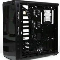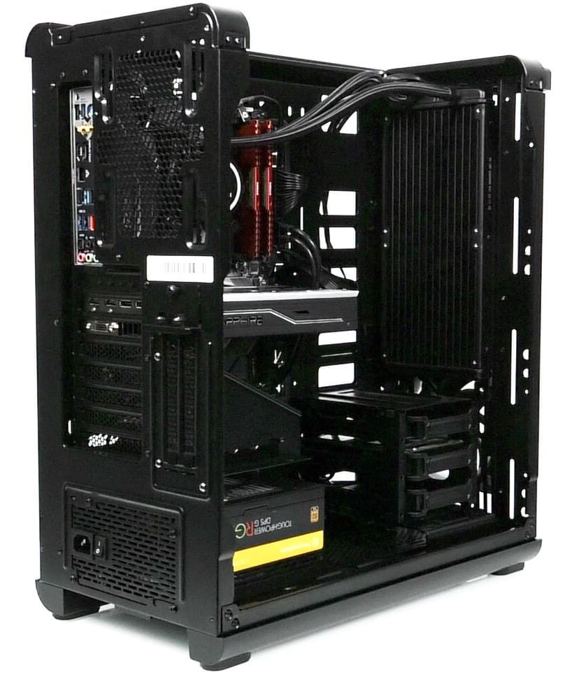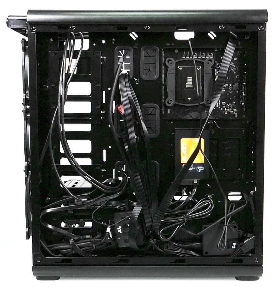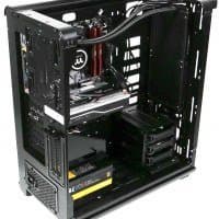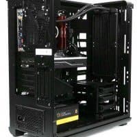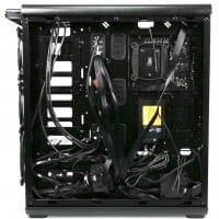 В основной части корпуса, где устанавливается системная плата, много свободного места и почти нет выступающих элементов, если не считать корзину для жестких дисков, так что монтировать комплектующие удобно.