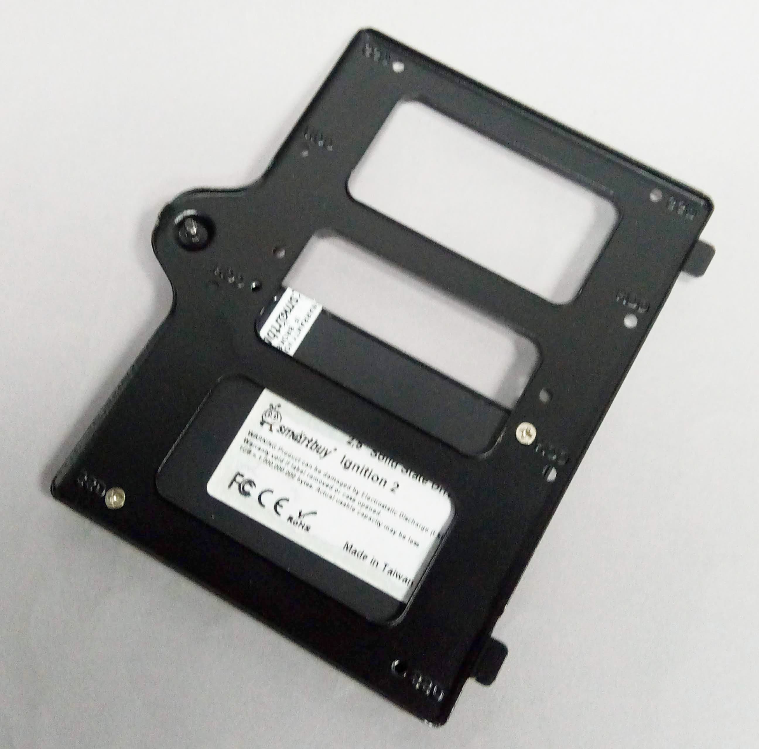 Также для накопителей предусмотрены четыре быстросъемных контейнера в виде монтажных пластин, которые установлены на обратной стороне основания для системной платы. Крепление контейнеров осуществляется за счет монтажных отверстий, которые цепляются за пару выступов. Контейнеры дополнительно фиксируются винтами с накатной головкой. В данном случае контейнеры универсальные, они позволяют устанавливать диски 3,5″ или 2,5″ на выбор. На каждую пластину можно установить один накопитель формата 3,5″ или два накопителя 2,5″.
