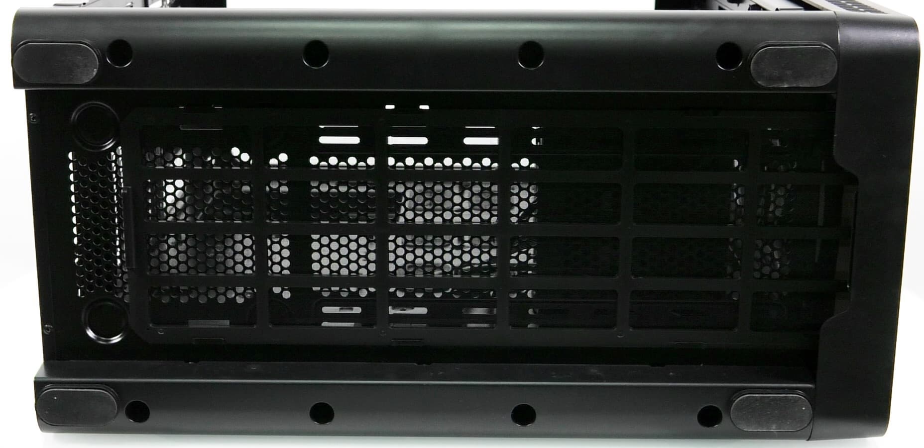 На оборотной стороне основания для системной платы также присутствуют места для установки накопителей. А вот посадочные места для накопителей с внешним доступом в корпусе полностью отсутствуют.