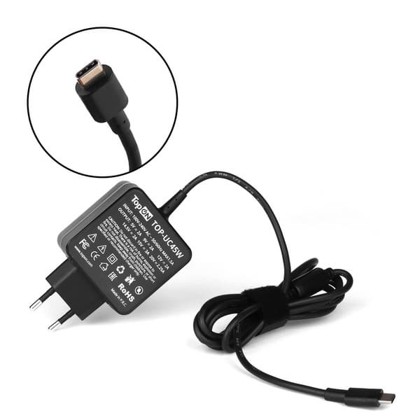 И даже в спектре продукции компании модели с поддержкой PD совсем новые, на официальном сайте информации минимум, даже фотографии появились, когда мы уже работали с блоком питания. Да и с обозначением есть путаница: на упаковке две надписи — на лицевой стороне покрупнее «Top-UCQ66», на нижнем торце помельче «Top-65WTC-D», но приведен код модели 102448, которому на сайте соответствует индекс Top-UC65D, он присутствует и в таблице с параметрами на тыльной стороне коробки, а главное — на корпусе самого устройства, поэтому именно его мы вынесли в заголовок.