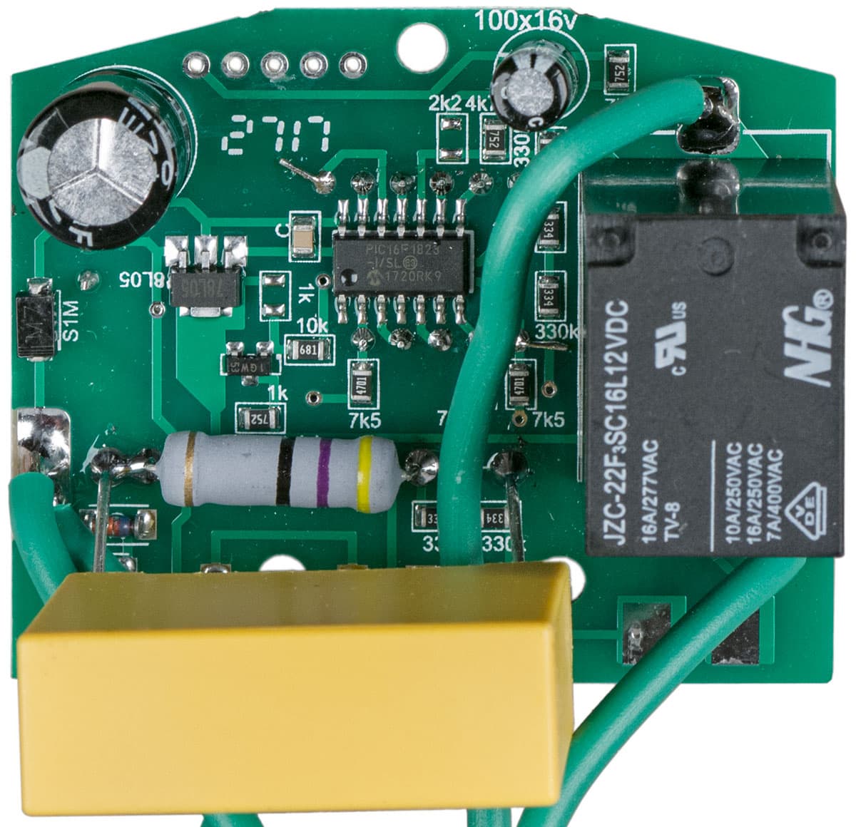 Управление осуществляется контроллером Microchip PIC16F1823.