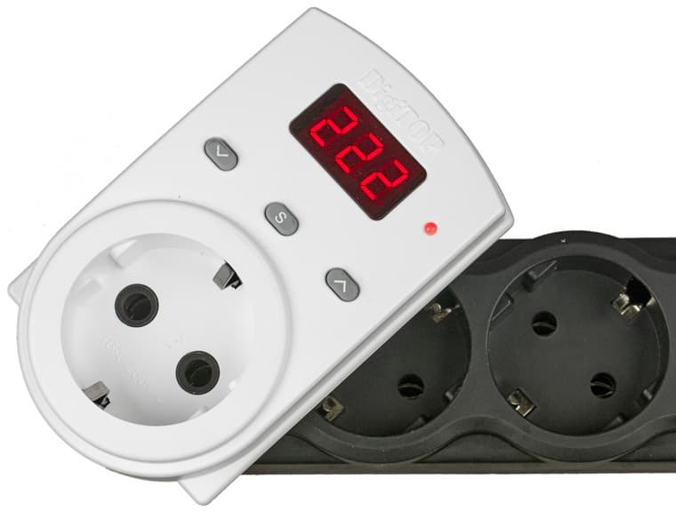 - Реле напряжения DigiTop, Volt Control и Rbuz с подключением в розетку